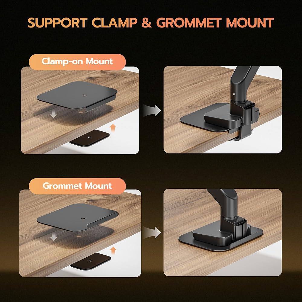 【Protect & Preserve Your Desk Surface】ARES WING monitor arm reinforcement plate is designed for both C-clamp and grommet monitor mount, effectively distributing pressure to reduce desk surface distortion, dents, or scratches caused by mounting. It's perfect for protecting delicate desktops like glass, particle board, ceramic and MDF.
