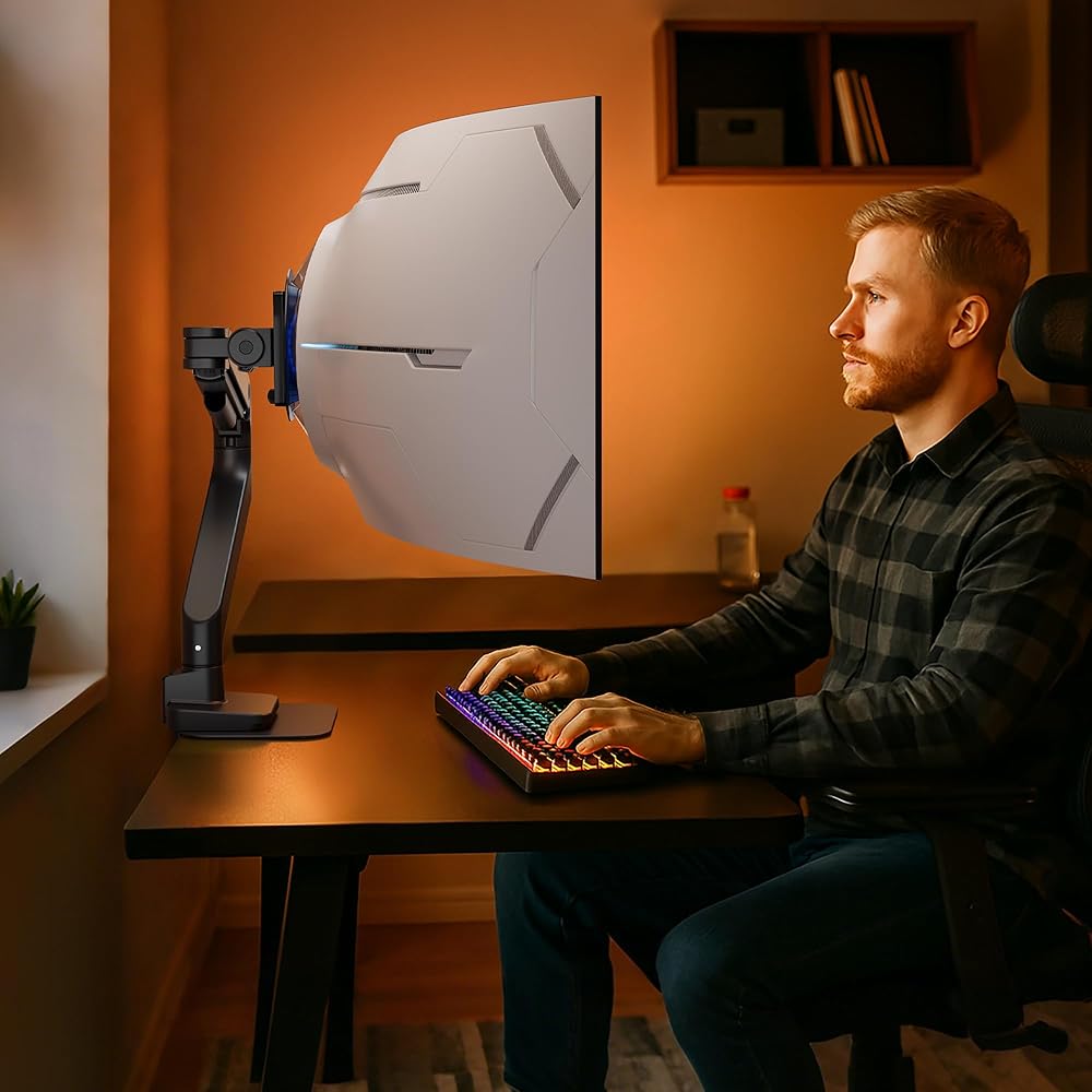 【Flexible with ARES WING Monitor Arm】Perfect combo with ARES WING heavy duty monitor mounts, giving you full range of monitor adjustability. Tilt, swivel, rotation, height and horizontal reach, allow you to ergonomically customize your posture, relieve the strain on your neck and back, providing a superior gaming and working experience.