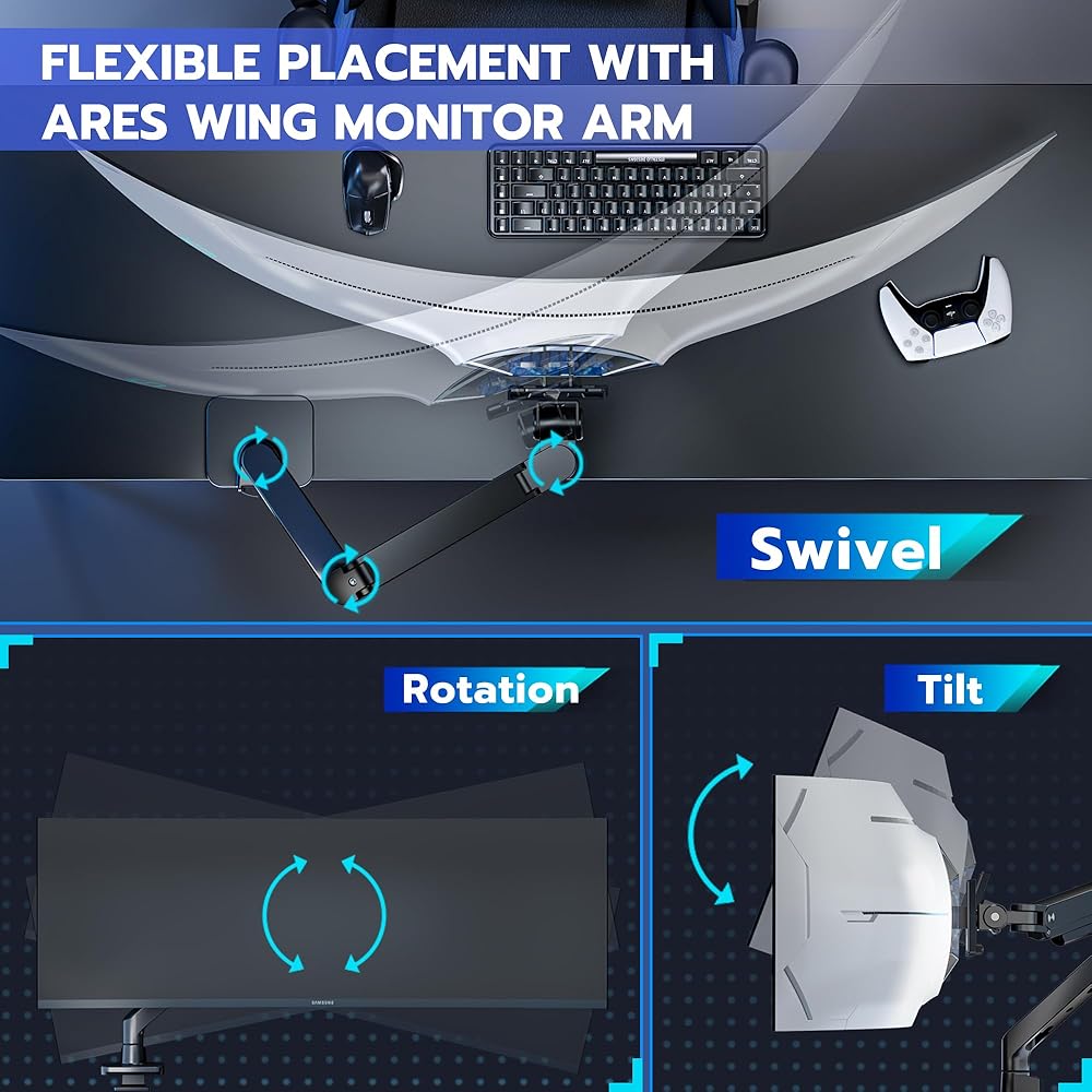ARES Wing Single Monitor Mount & Vesa Adapter لـ Samsung Neo G9 و G65B و G70A و G75T و G85NB و CRG9 و CHG9 و CHG90 و Odyssey G9