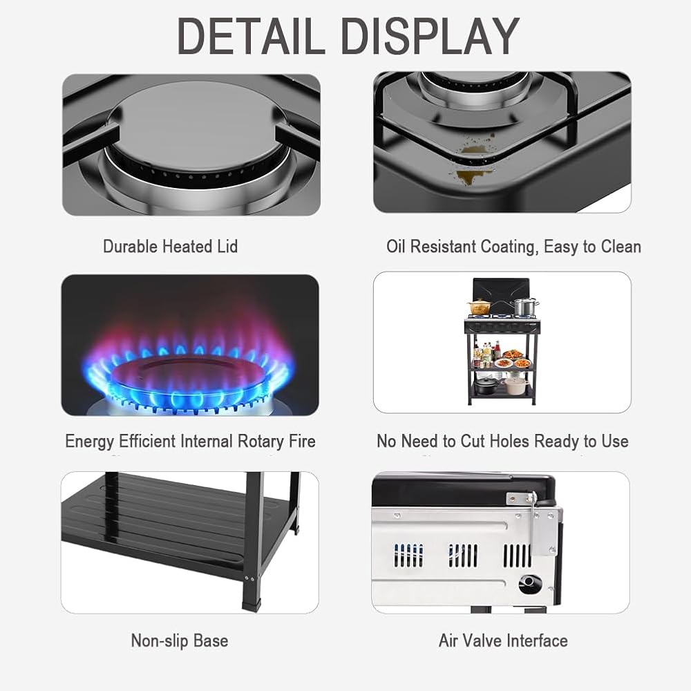 【4 موقد غاز الموقد】: مع أربعة شعلات مع مقابض مستقلة لضبط القوة النارية ، يمكنك طهي مكونات مختلفة في نفس الوقت ، والاستمتاع بمزيد من الأطعمة اللذيذة ، وتوفير وقت الطهي. ملاحظة: لا تتضمن الحزمة خرطومًا ، فأنت بحاجة إلى شراء خرطومك بقطر حوالي 1 سم لتوصيل الغاز.