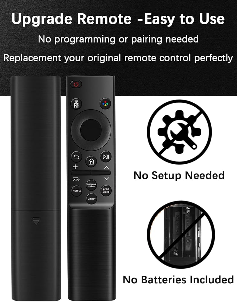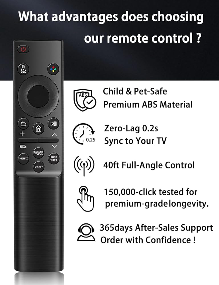 【توافق التحكم في REMTE】 يتوافق عنصر التحكم عن بُعد الصوتي مع Samsung (2018-2025 TV Models) NEO QLED / QLED / OLED / CRYSTAL UHD / The Frame / The Serif / the Sero Series TV ومتوافق مع معظم أجهزة التحكم في تلفزيون Samsung. إذا لم يدعم جهاز التلفزيون التحكم الصوتي ، فقد لا تعمل الوظيفة الصوتية لهذا عن بُعد.