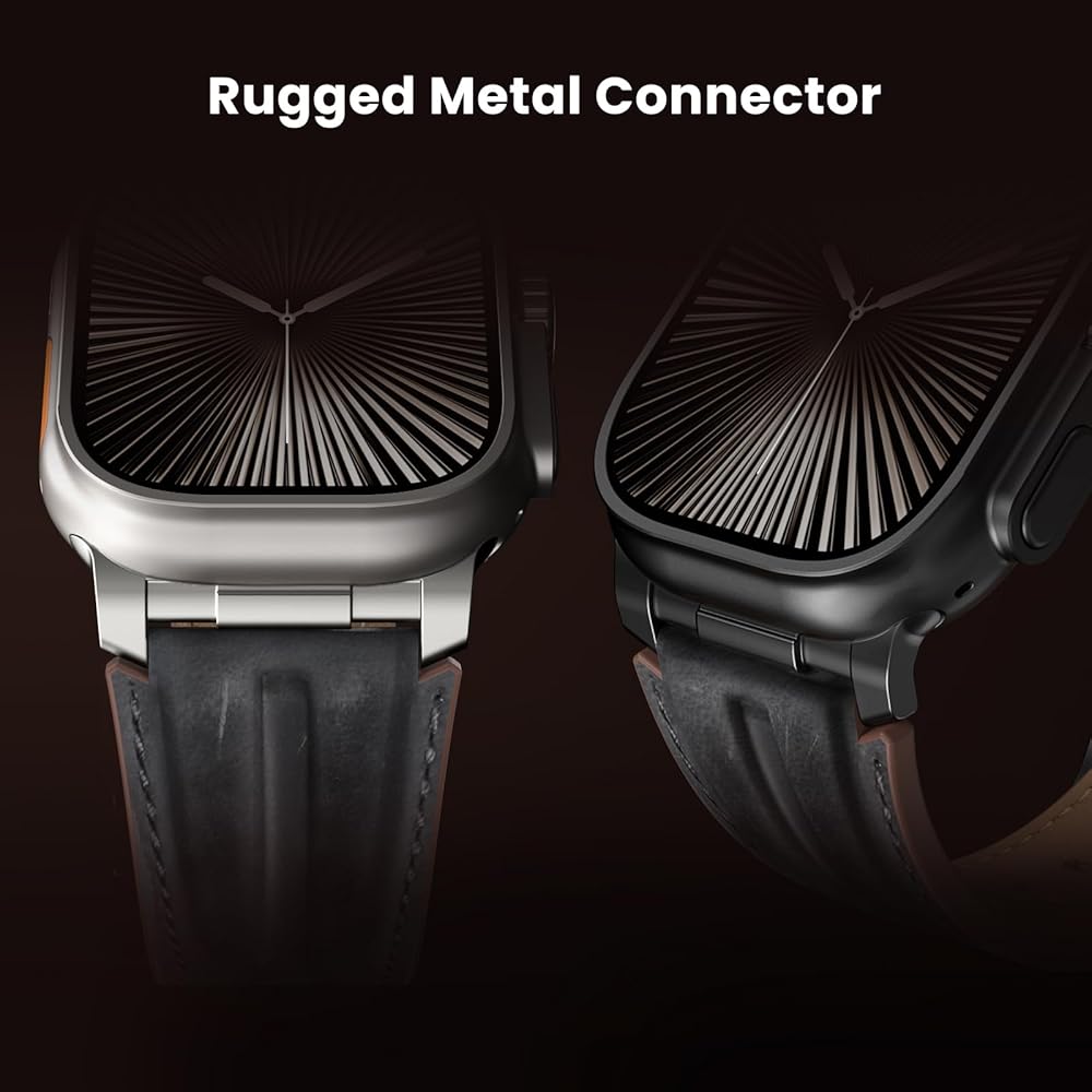 الموصل المعدني الوعرة: يأتي كل شريط مزودًا بموصل معدني مخصص لا يوفر فقط نوبة آمنة ولكنها تضيف أيضًا جمالية وعرة تكمل تمامًا التصميم الأنيق لـ Apple Watch Ultra