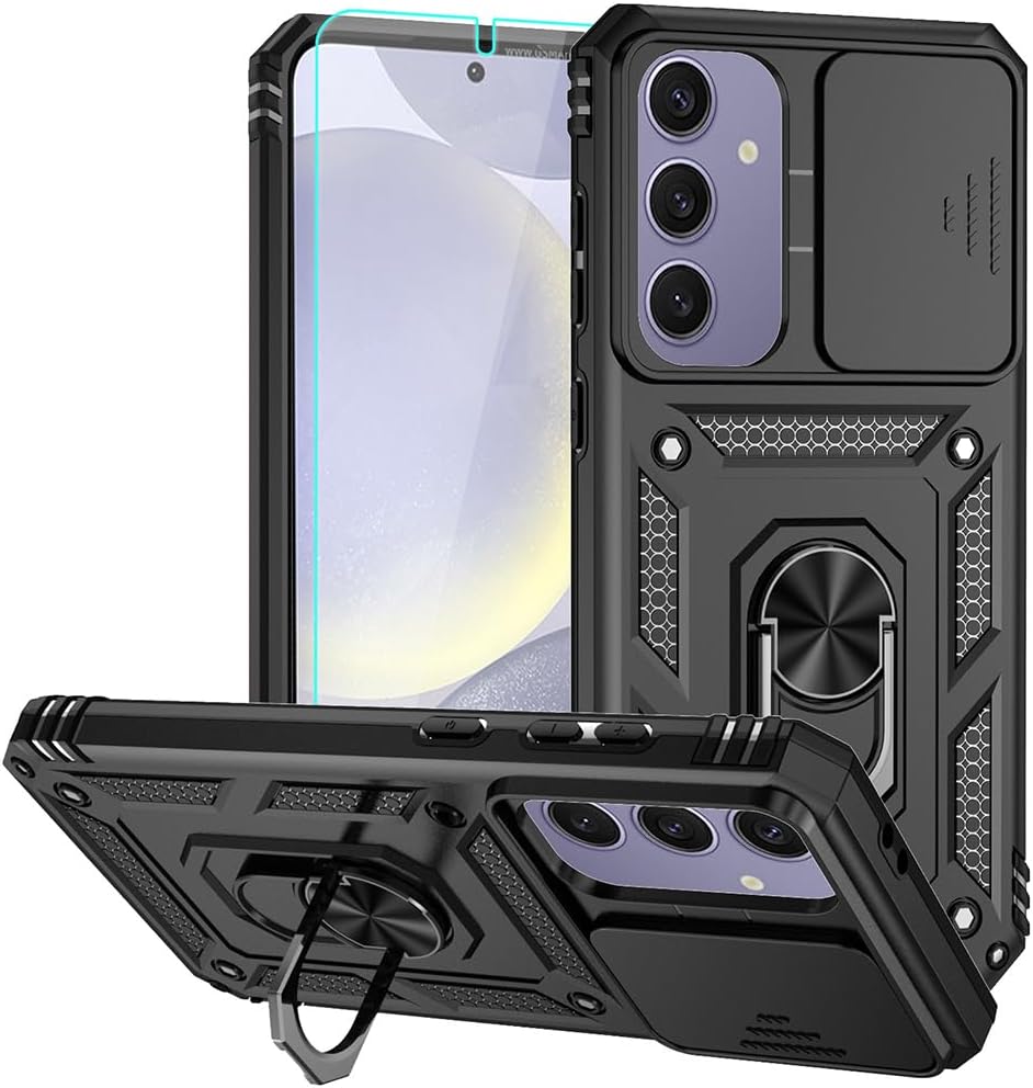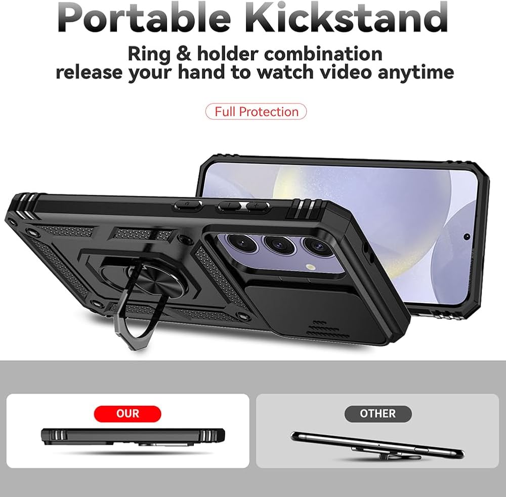 【علبة الدروع المصممة خصيصًا】 لـ Samsung Galaxy S24 FE فقط ، مع غطاء عدسة الكاميرا المنزلق في متناول اليد وحامل الحلقة (يعمل أيضًا كحامل). تتيح القواطع الدقيقة الوصول بسهولة إلى الأزرار والسماعات ومنفذ الشحن وجميع المنافذ الأخرى. ⚠ الاهتمام: بسبب تدخل الحلقة المعدنية ، لن تدعم القضية الشحن اللاسلكي.
