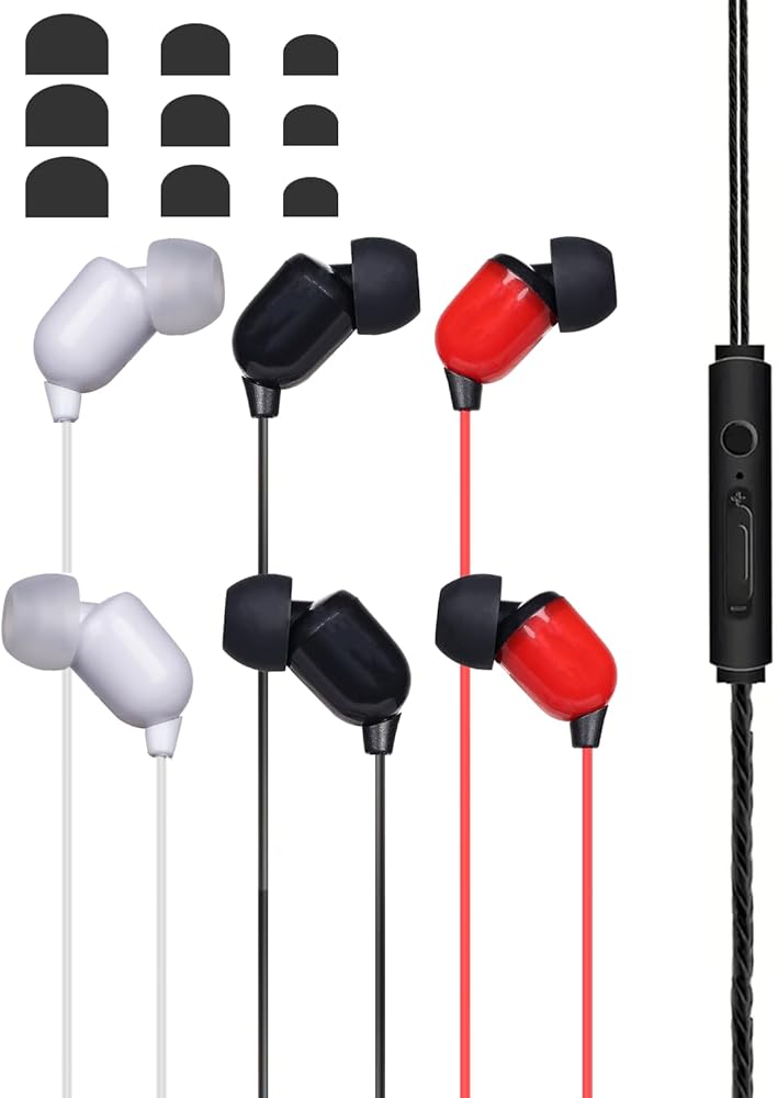 Thoughtful Design - This versatile 3-pack of wired earbuds features a lightweight construction without a microphone, complemented by a vibrant color selection (1 black, 1 red, 1 white). Each pair embodies individuality while ensuring practical functionality. A convenient collar clip is included to prevent the earbuds from slipping away during use.