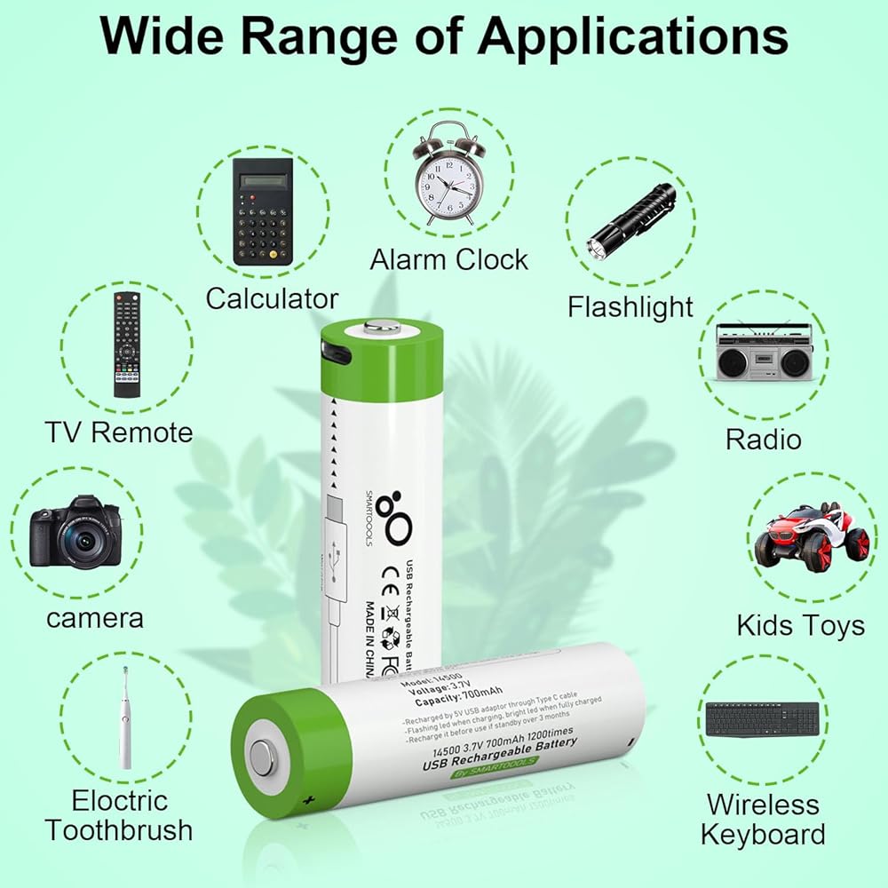 يستخدم على نطاق واسع: 3.7 فولت 14500 بطارية قابلة للشحن للمصابيح الكهربائية والمصابيح الأمامية والمراوح والكاميرات الرقمية والألعاب والأكواط التجارية ومكبرات الصوت وأقراص الفيديو الرقمية المتنقلة والأجهزة المحمولة الأخرى التي تعمل ببطاريات 3.7 فولت.