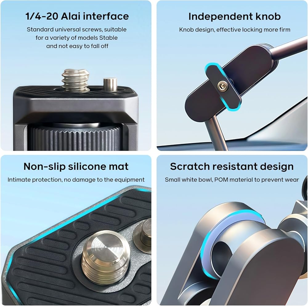 【التصميم القابل للتعديل: تم تحسين ذراع التلسكوبية الألومنيوم】 هذا الحامل الخاص بالهاتف المغناطيسي للشفط الخاص بالشفط مع مادة سبيكة ألمنيوم عالية الجودة عالية الجودة. إنه أقوى ومقاوم للارتداء من المواد البلاستيكية ، ويمكنه تحمل وزن أكبر ، ولديه عمر خدمة أطول. يستخدم الذراع التلسكوبي بنية زر الدوار ويمكن تدويرها 360 درجة ، والتي يمكن أن تلبي احتياجاتك في أي مكان تتيح ذراع متعددة المفصلات من تحديد المواقع المرنة ويمكن قفلها في مكانك المفضل