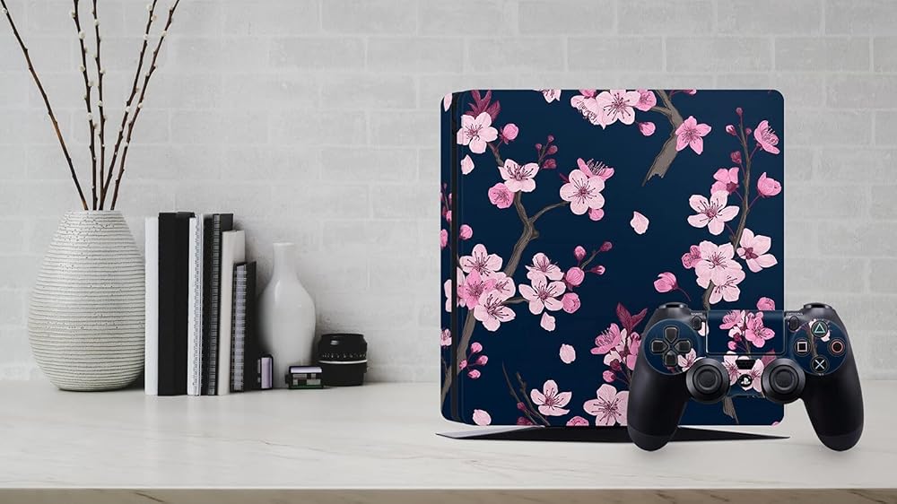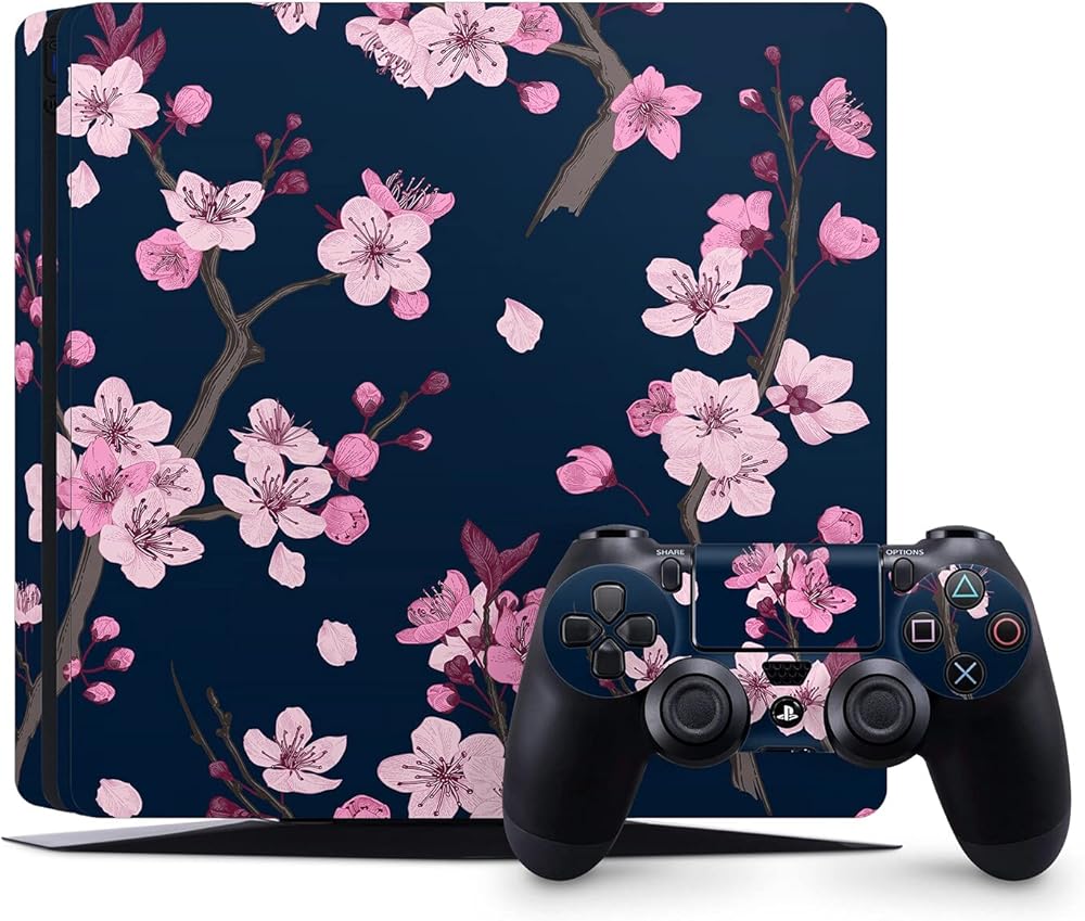 Zoomhitskins متوافق مع PS4 Slim Skin و Japan Flowers Pink Sakura Cherry Blossom و Date & Fit و 3M Vinyl ، مصنوعة في الولايات المتحدة الأمريكية