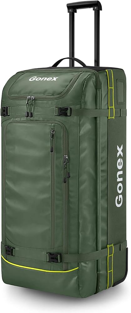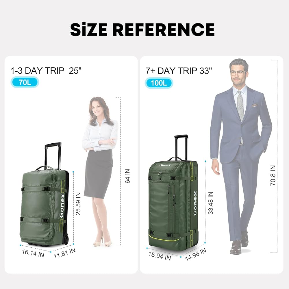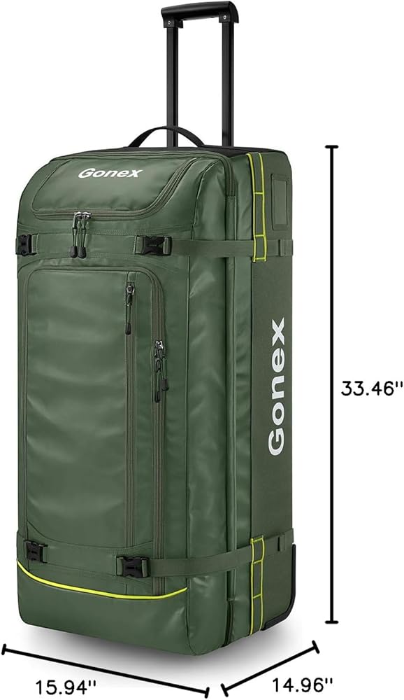 【مادة ممتازة】مصنوعة من نسيج بولي كلوريد الفينيل عالي الكثافة 1200D، مقاوم للماء، ومقاوم للاهتراء وخفيف الوزن، مع سحابات YKK المتينة. تم تصميم المقبض التلسكوبي المصنوع من السبائك هندسيًا للاستخدام السهل والمعزز.