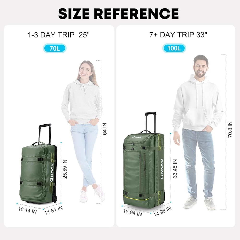 【استخدامات واسعة】هذه الحقيبة المتينة ذات سعة 100 لتر مثالية للسفر والرحلات الطويلة والتخييم ورحلة القيادة الذاتية وغيرها من الأنشطة الخارجية.