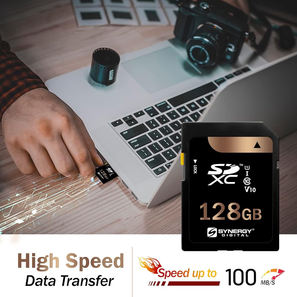 Synergy Digital 128GB Secure Digital SDXC UHS -I بطاقات الذاكرة ، متوافقة مع Sony FDR -AX43 UHD 4K Camcorder - الفئة 10 ، U1 ، 100 ميجابايت/ثانية ، 300 سلسلة - حزمة 3