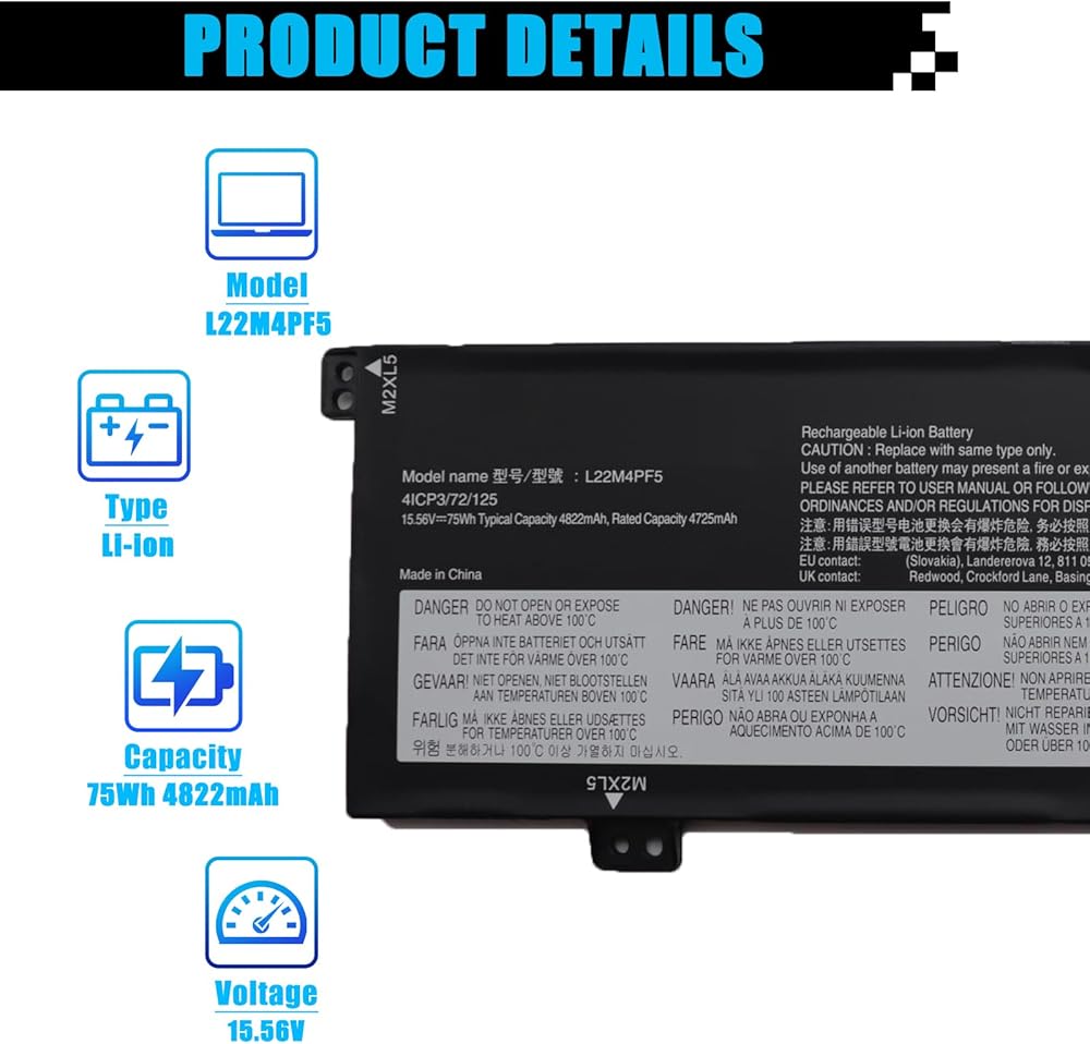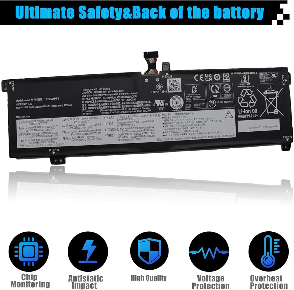 【المواصفات】 نموذج العنصر: L22M4PF5 ؛ نوع البطارية: لي أيون ؛ الجهد: 15.56V ؛ السعة: 75WH 4822mAh ؛ حالة البطارية: العلامة التجارية الجديدة.