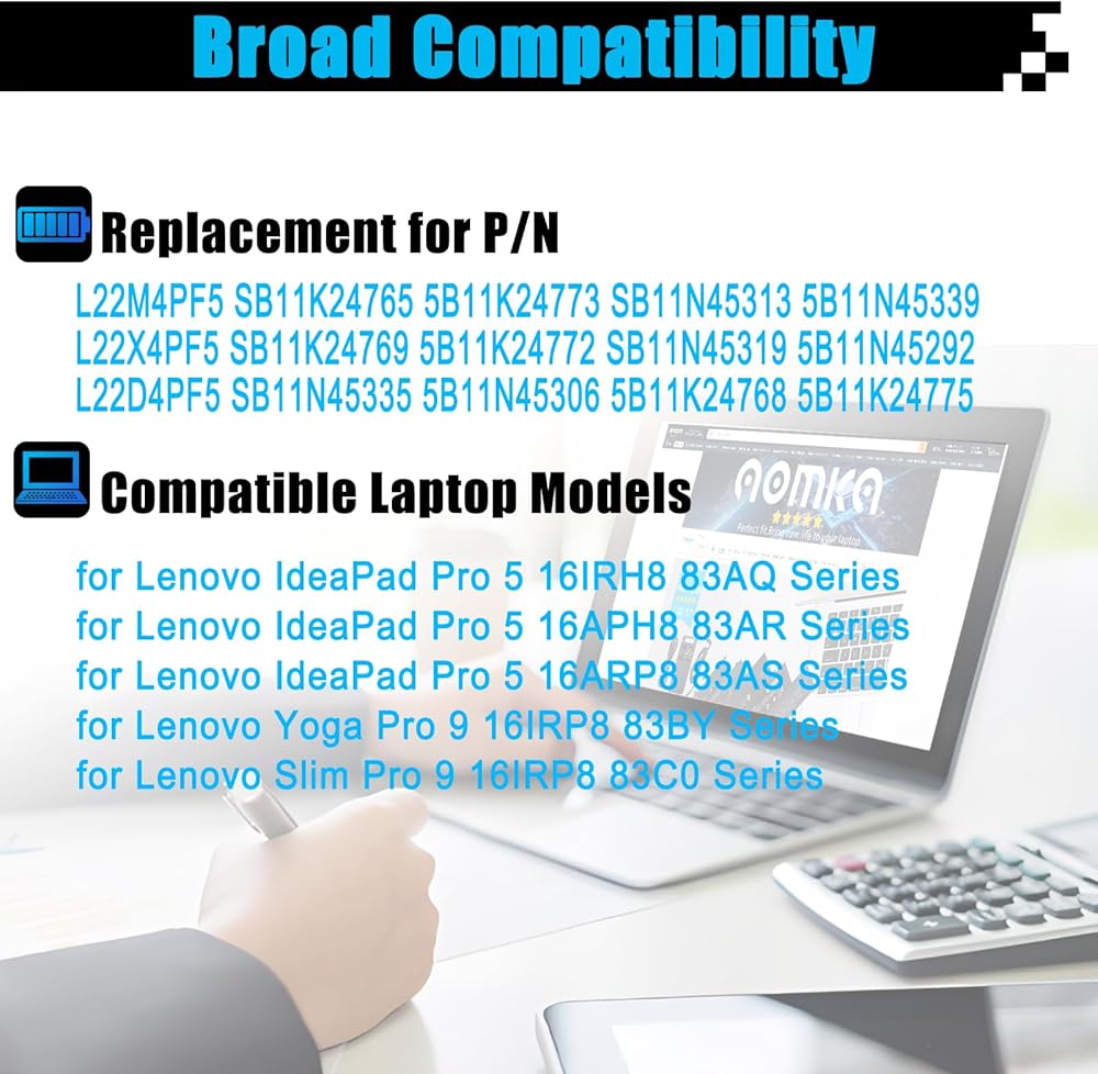 L22M4PF5 SB11K24765 استبدال بطارية الكمبيوتر المحمول لـ LENOVO IDEAPAD PRO 5 16IRH8 16APH8 16ARP8 YOGA PRO 9 16IRP8 SLIM PRO 9 16IRP8 SERIES SB11N45313 L22X4PF5 SB1K24769 SB11N45319