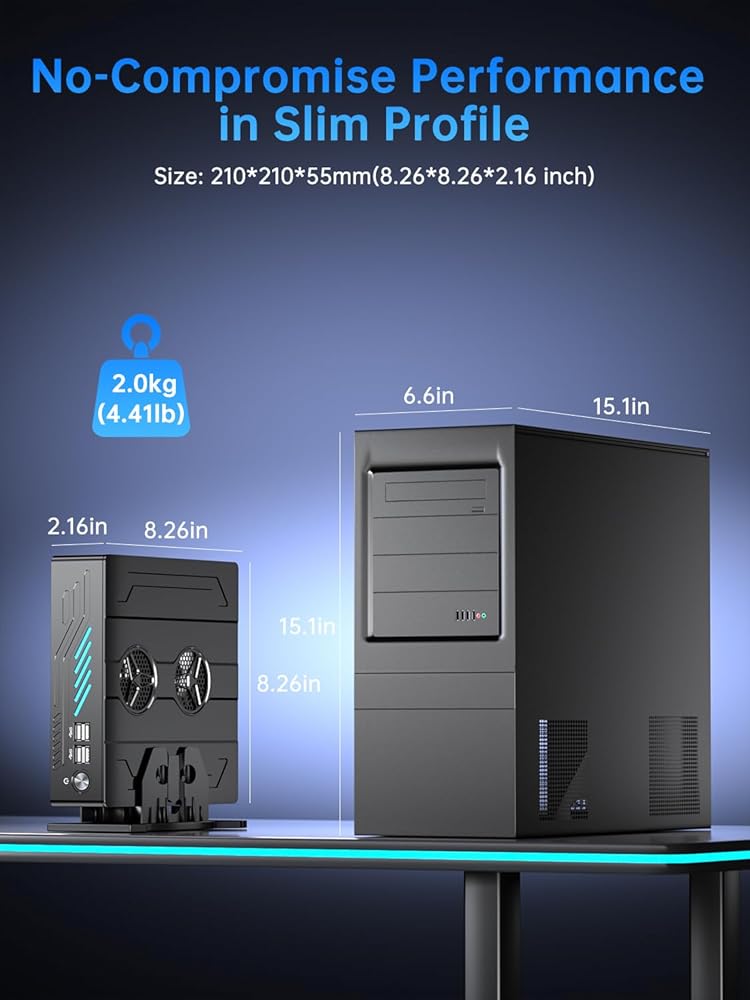 [ضمان لمدة عامين] يأتي جهاز الكمبيوتر المصغر الخاص بنا مع ضمان لمدة عامين والدعم الفني مدى الحياة! حجم كمبيوتر تبريد الماء هو 210*210*55mm (8.26*8.26*2.16 بوصة) والوزن هو 2.0 كجم فقط (4.41 رطل) ، مما يمكن أن يوفر لك الكثير من مساحة سطح المكتب.