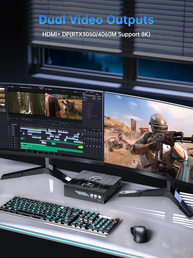[Dual Display & Win 11 Pro] يتميز جهاز كمبيوتر Desktop Mini بمشاهدة HDMI وواجهات فيديو DisplayPort ، مما يدعم شاشة Dual-Screen 4K@60Hz Ultra-High Definition. يسمح بالتكوين المرن في أوضاع موسعة أو مكررة لتلبية احتياجات الإنتاجية مثل سير العمل متعدد المهام الشاشة ومهام متعددة. تم التحميل المسبق لـ Win 11 Pro ، ويضمن النظام توافقًا سلسًا مع أحدث البرامج والألعاب.