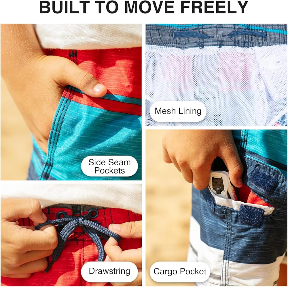 - UPF 50+ Quick Dry Microfiber: Lightweight and durable for your most comfortable pair of boys swim trunks
