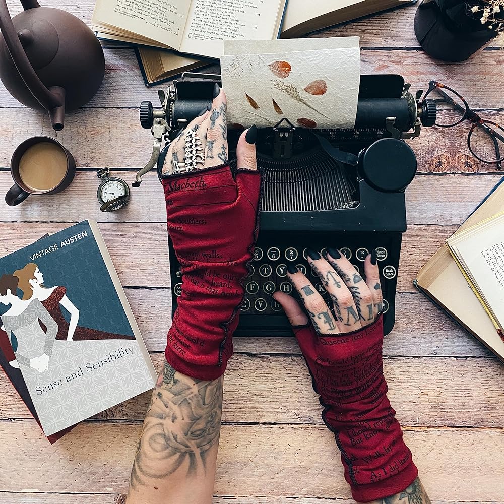 Let your hands run red with these super-soft Macbeth Writing Gloves featuring original text from Act V, Scene V of Shakespeare's monumental tragedy.