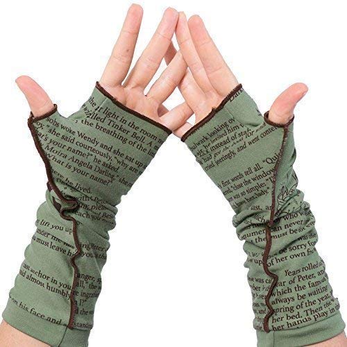 Join Peter Pan and Wendy Darling on their wondrous adventures in Neverland with these soft, green fingerless gloves, featuring text from J. M. Barrie's classic novel.