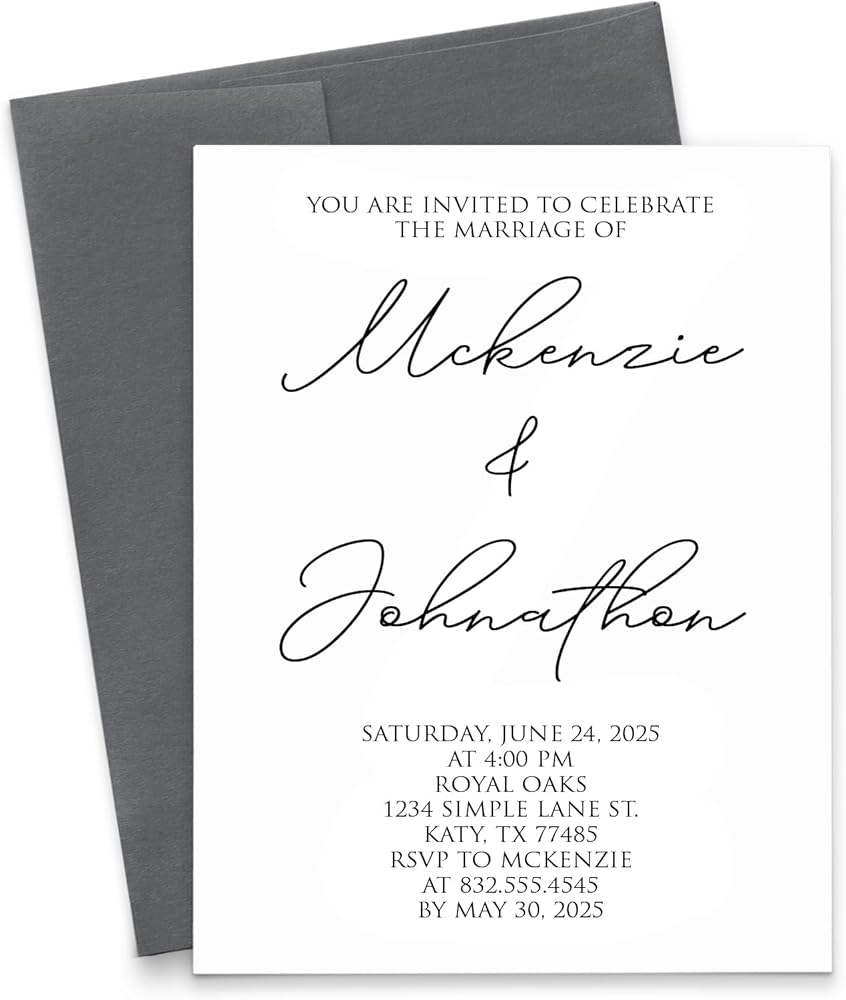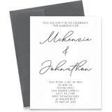 [ما تم تضمينه] - السعر الموضح هو سعر البداية لمجموعة من 10 دعوات + 10 مظاريف في الحجم A2 (5.5 × 4.25 بوصة). زيادة الكمية بالنقر فوق زر التخصيص واختيار الكمية التي تريدها. سيزداد السعر بناءً على الكمية التي تختارها.