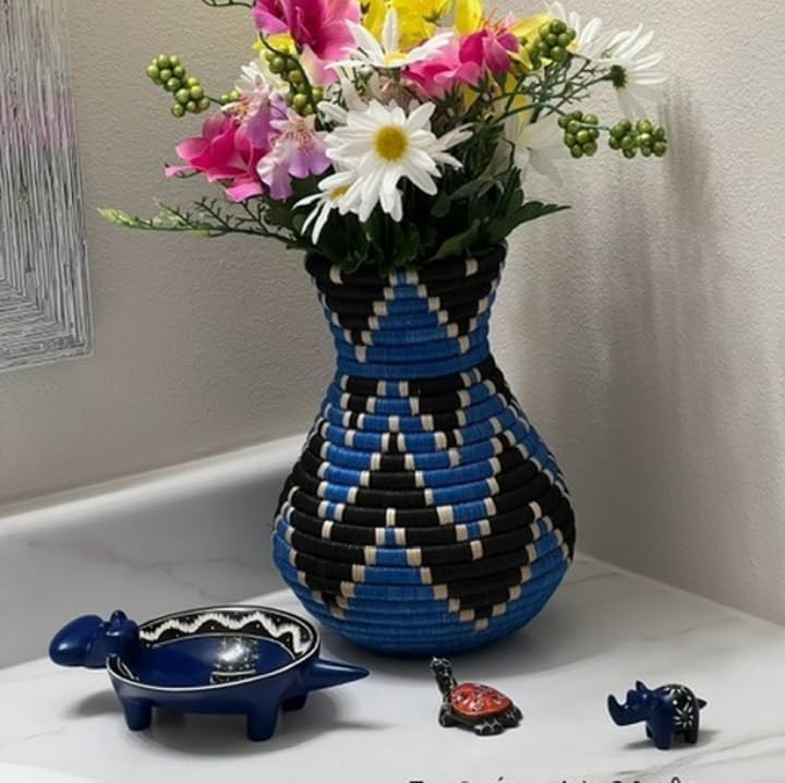 Add a touch of natural elegance to your home with this handwoven flower vase, crafted with care by skilled artisans. Made from high-quality sisal, this African flower vase showcases traditional weaving techniques, bringing a unique and timeless charm to any space. Perfect as a decorative basket vase, it effortlessly enhances your living room, dining area, or office with its earthy textures and organic beauty. Whether you use it to hold dried flowers, pampas grass, or as a standalone statement piece, this handmade decorative vase blends style and craftsmanship seamlessly. Each handmade flower vase is unique, reflecting the artisan's touch and the cultural heritage behind its creation. Elevate your décor with this stunning sisal basket vase, a perfect mix of tradition and modern aesthetics.
