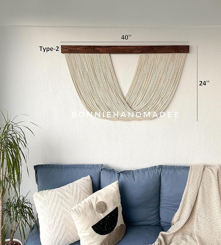 جدار ماكرام كبير معلقة بوهو جدار ديكور لغرفة المعيشة ديكور الجدار المنسوجة غزل الجدار الجدار معلق الجدار الجمالي اللوح الأمامي (كبير 40''x24 '' ، من النوع 2)