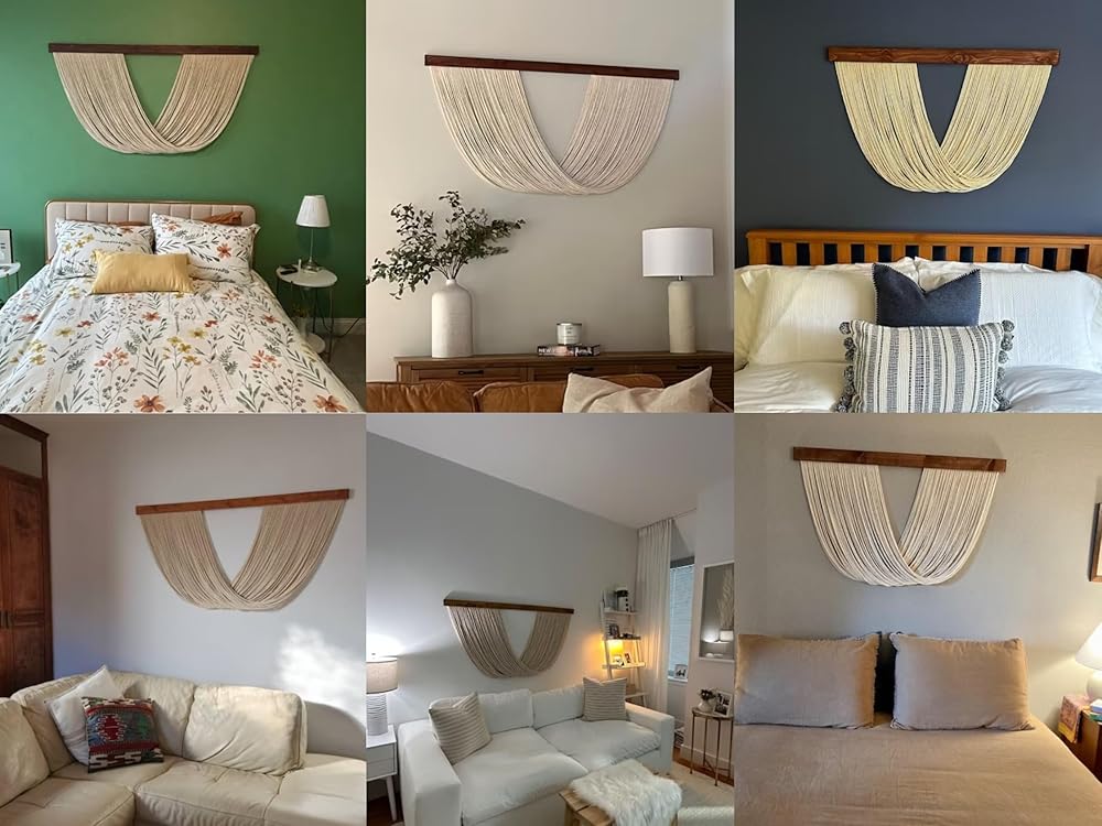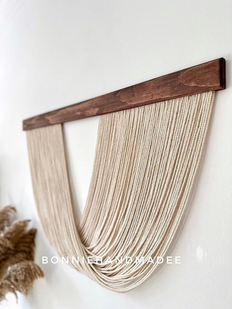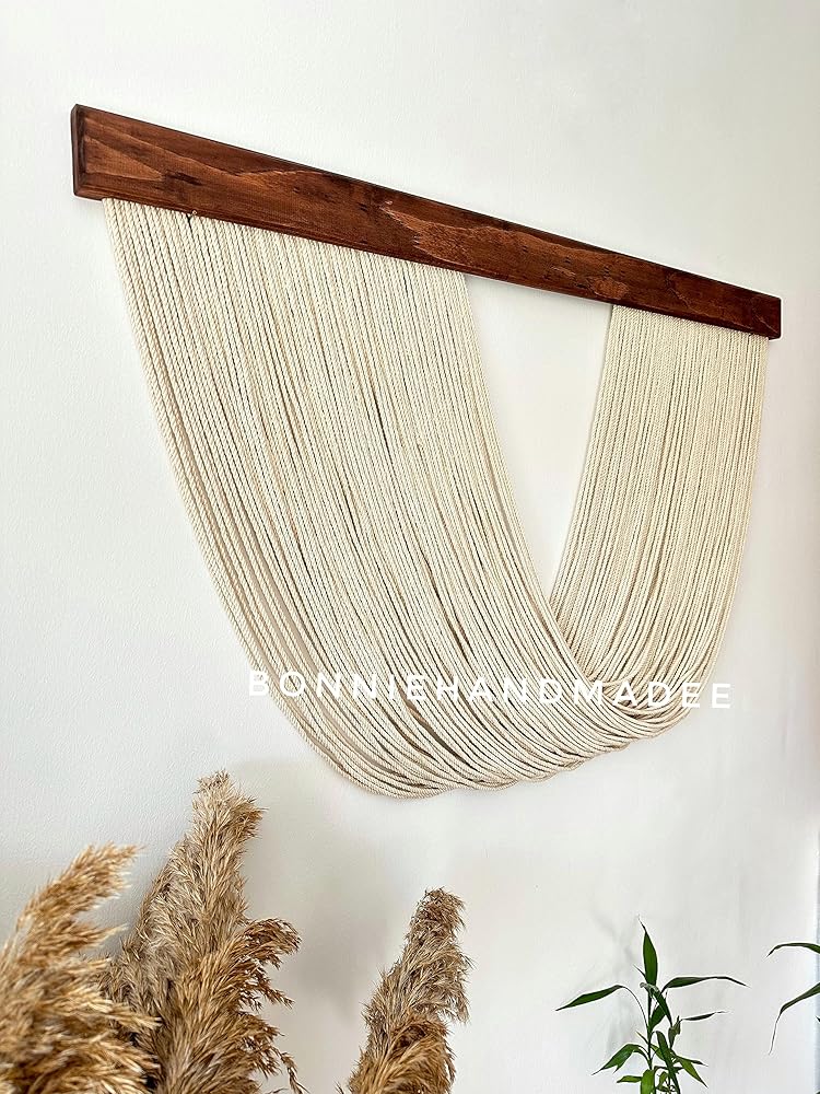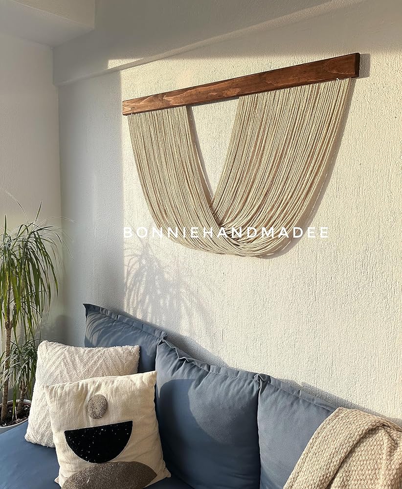 Material: Cotton rope + Handmade wood Color: Ecru-White off / Different color wood Size: Large - Width: 40 inch Height: 24 inch XLarge - Width: 60 inch Height: 30 inch XXLarge - Width: 80 inch Height: 36 inch