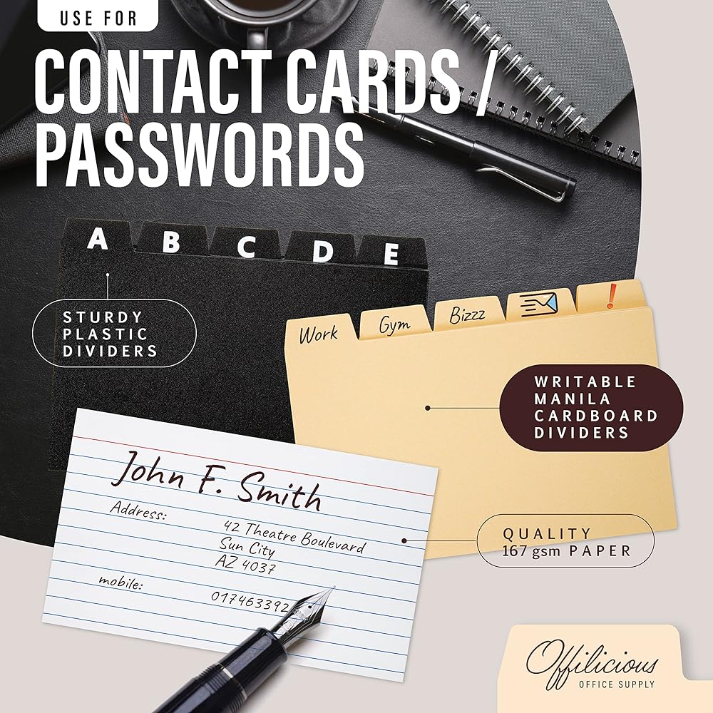 Whether you're sorting recipe cards, flashcards, addresses, or passwords, this 3x5 index card box comes fully equipped to help you stay neat and efficient. The included set of 25 sturdy black plastic dividers (A-Z) makes it easy to file alphabetically, so no more wasted time searching for the right card.