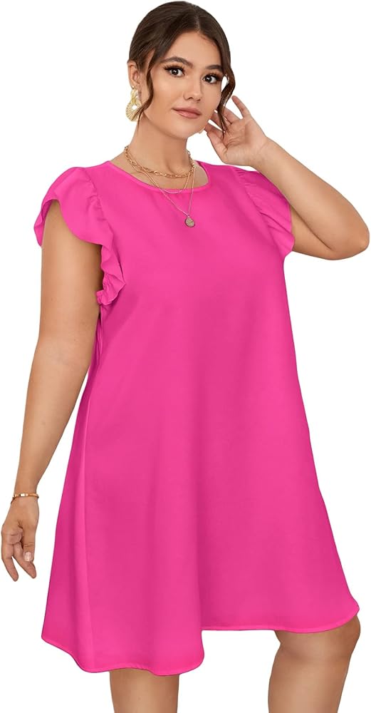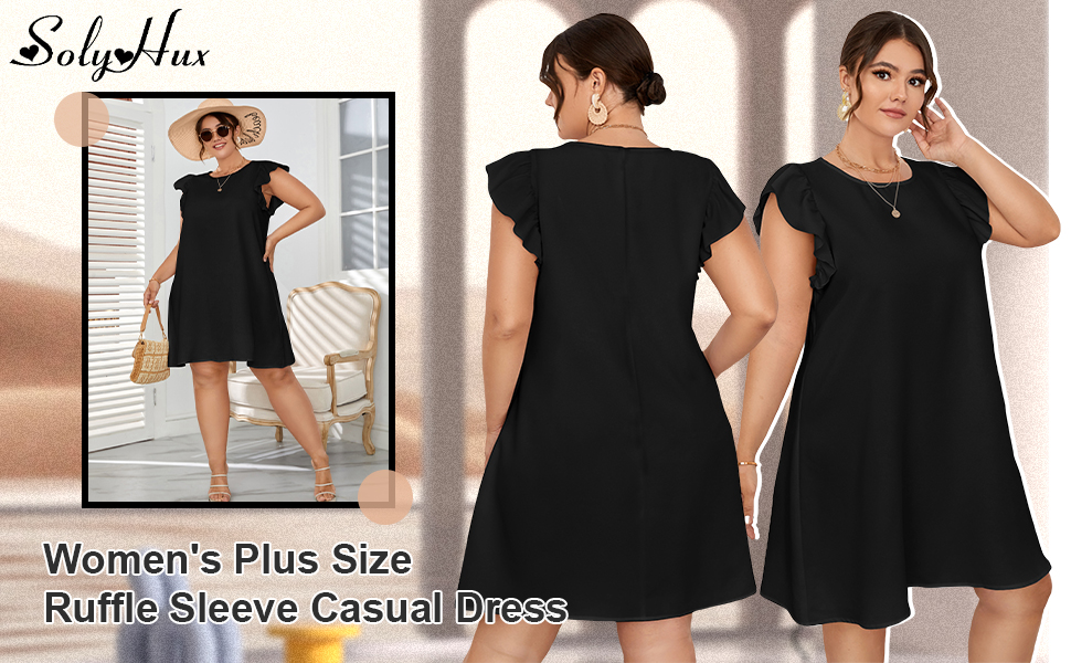 SOLY HUX فستان صيفي كاجوال بمقاس كبير وأكمام قصيرة ورقبة دائرية بلون سادة وفضفاض متوسط ​​الطول