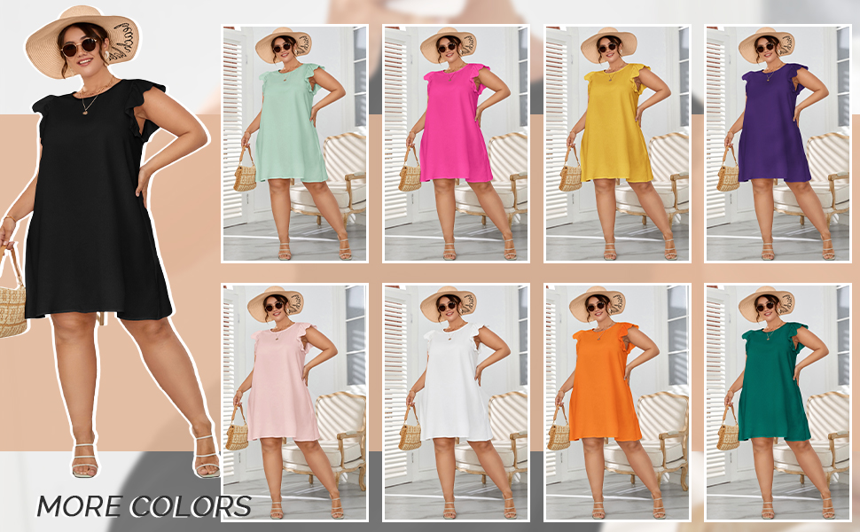• السمات: رقبة دائرية، أكمام قصيرة، أكمام على شكل فراشة، مكشكشة، حاشية مستقيمة، فستان تونيك، عصري