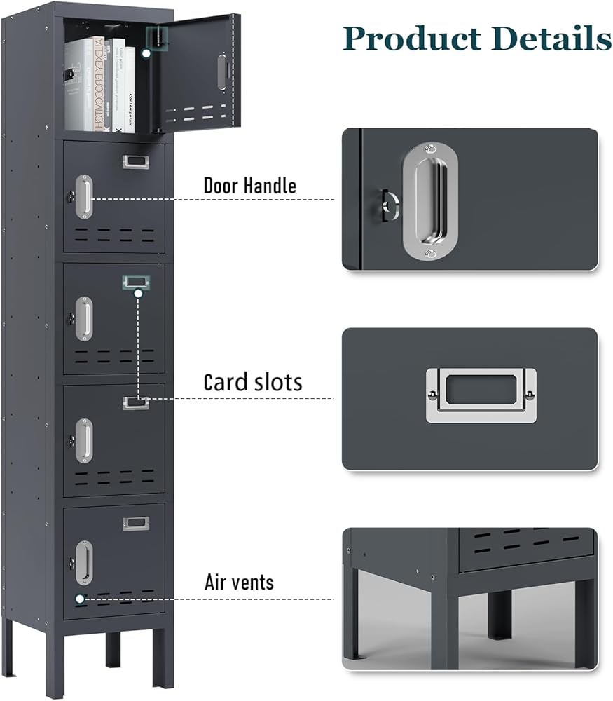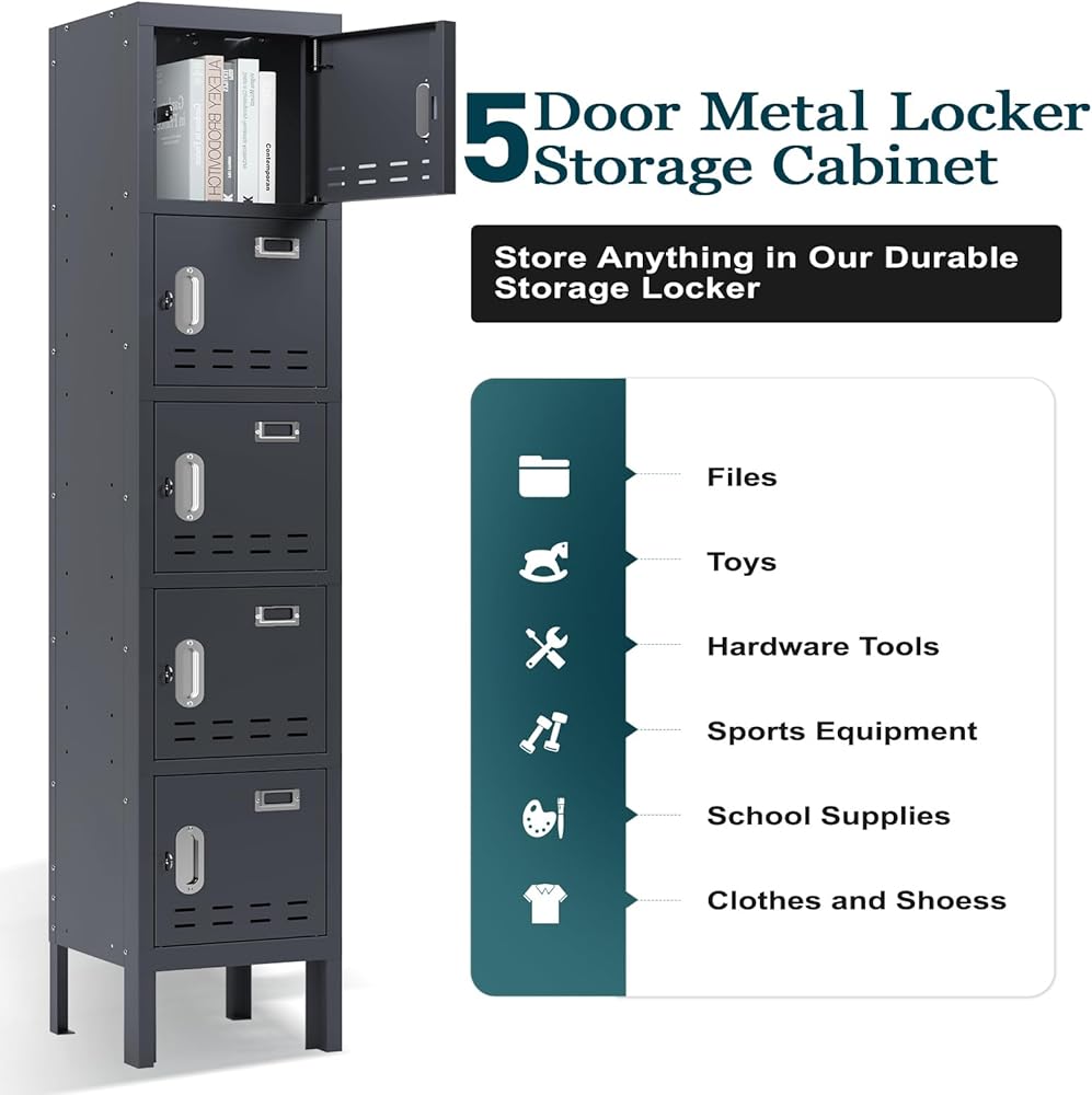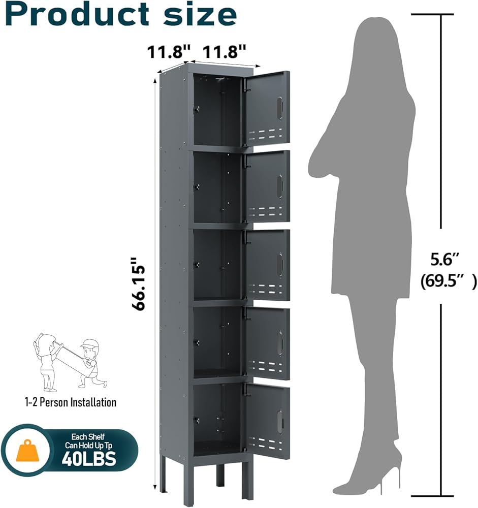 • 【الخزانات التي تحتوي على خمسة أبواب】 66 '' تحتوي الخزانات العالية على 5 مقصورات يبلغ حجمها 13 بوصة ، 12''wide ، 12 ". خزانة التخزين لديها مساحة كافية لتخزين اللوازم المكتبية ، اللوازم المدرسية ، الملابس ، الأحذية ، الأكياس ، الأحذية ، الأكياس ، الملابس ، الأحذية ، الحقائب ،
