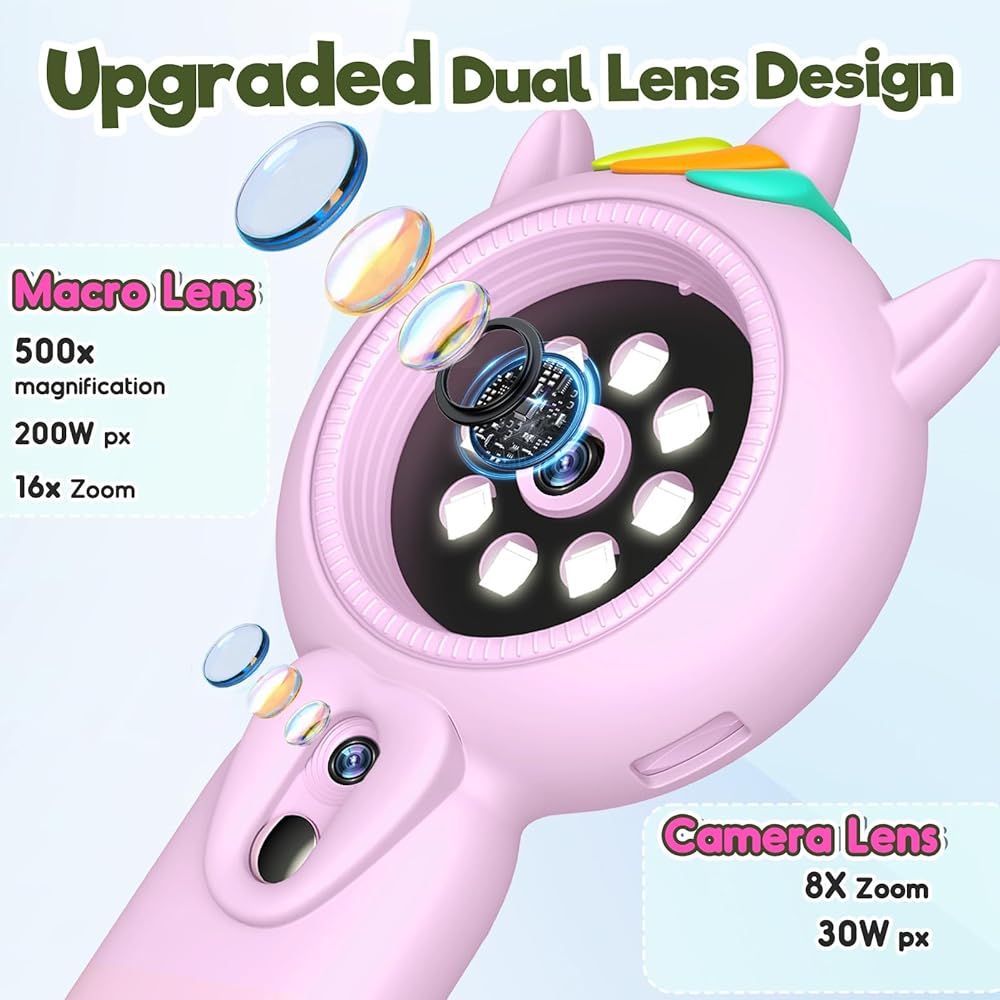 2 في 1 Kids Microscope & Camera ، هدايا Unicorn Toys لـ 5 6 7 8 9 10 11 12 سنة ، فتيات يبلغ من العمر 500 × جيب ميني جيب رقمي محمول باليد للأطفال الصغار الصغار | مجموعة العلوم العلمية للفتاة 4-6