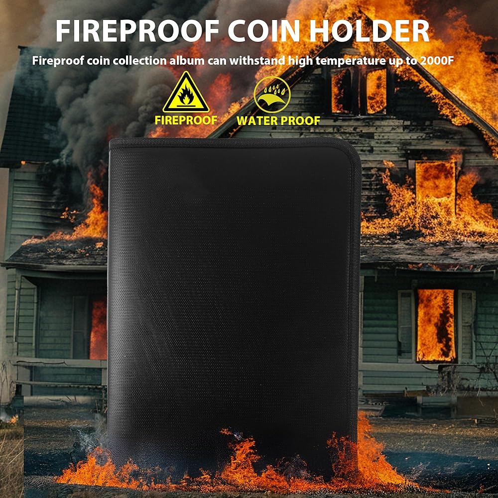【مقاومة للحريق والماء】: كتاب مجموعة العملة المعدنية هذا مع مادة طلاء السيليكون ، يمكنه تحمل درجات حرارة تصل إلى 3000 ℉. تحمي هذه الميزة الأشياء الثمينة من أضرار الحرائق ، والتي تضمن حماية ممتازة لمجموعاتك الثمينة في حالة حريق. بالإضافة إلى ذلك ، تضمن مقاومة المياه العالية أن تبقى عملاتك جافة ومحمية من الرطوبة.