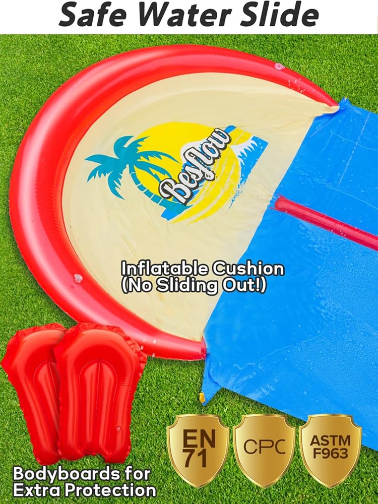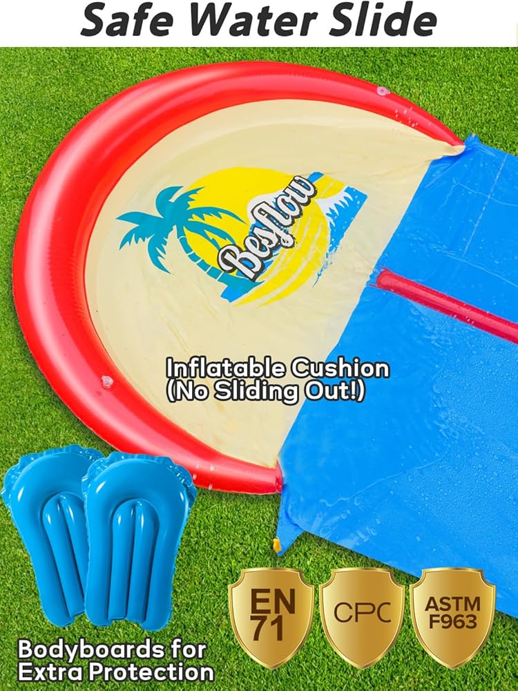 الصيف أمر أساسي: عندما ترتفع درجات الحرارة ، توفر هذه الشريحة المائية الطويلة للبالغين والأطفال المائي المثالي ؛ الزهر المائي يحول الفناء إلى كرنفال مائي