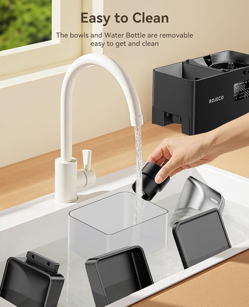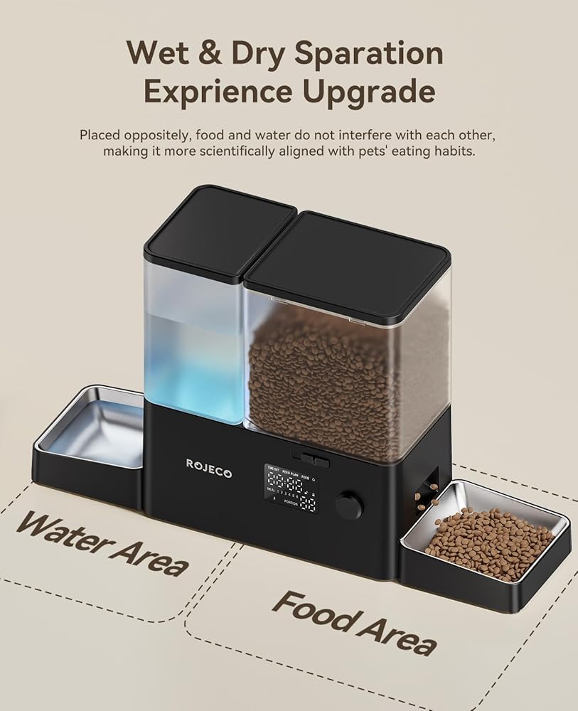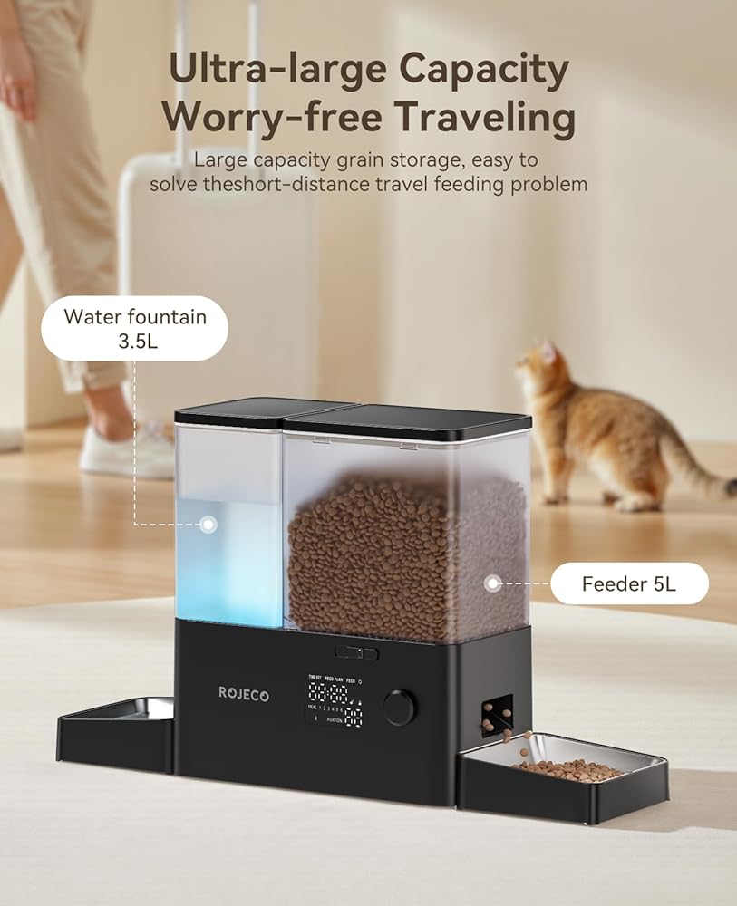【2 IN1 التغذية ، التغذية العلمية】 2 في -1-1 وحدة تغذية الكلاب القط أوتوماتيكي وموزع المياه ، تمنع تغذية مياه التغذية المنفصلة الطعام الرطب ويمنع الحيوانات الأليفة من تناول الطعام المتعفوم أو الرطب ؛ 5L Food + 3.5L يدعم المياه السفر الممتد (قططان حتى 7 أيام) ، مما يقلل من إمكانية أن تكون الحيوانات الأليفة جائعة أثناء السفر/العمل الإضافي.