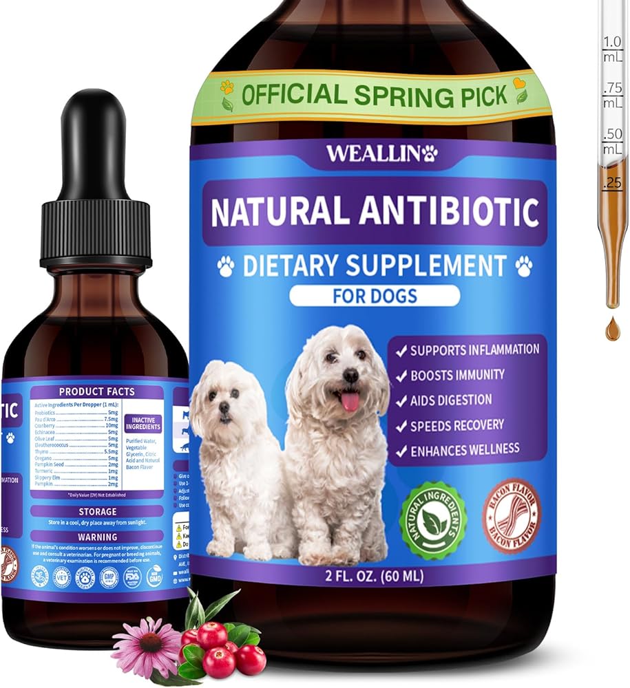 دعم المضادات الحيوية للكلاب - العناية بالمضادات الحيوية الطبيعية للكلاب المكمل العشبي للسعال الحساسية الحكة في حكة الدعم المناعي الراحة لجميع السلالات والأعمار - 60 مل/2 أوقية نكهة لحم الخنزير المقدد