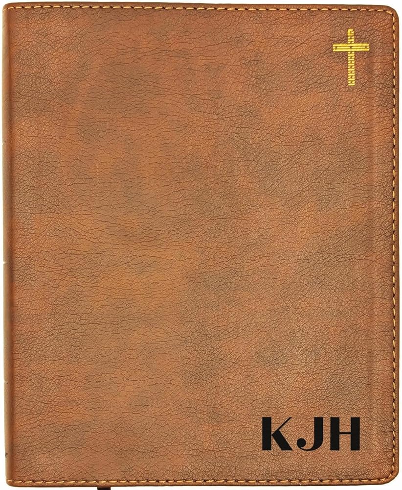 • BIBLE FEATURES – New International Version (NIV) Journaling Bible custom laser-engraved with your name! Includes lined, wide margins for notes and personal reflections with thick cream paper for enduring notetaking. The double-column layout keeps it portable at just 9”x7.25”x1.5”. Features a satin ribbon marker, red-letter text for the words of Jesus, and a leather-like cover lies flat when open. Comfortable 8-point font size for easy reading.