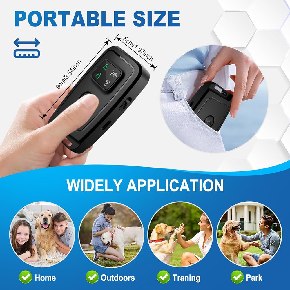 2-in-1 Dog Bark Control: يجمع رادع لحاء الكلاب بين التدريب ووظيفة الرادع في واحد ، لتحل محل الصافرة ، ذوي الياقات ، مربع اللحاء ، الألم البدني الفرس أو أجهزة الضيق. بنقرة بسيطة ، توقف على الفور السلوكيات غير المرغوب فيها. رفاهية كلبك هي أولويتنا القصوى ، ويضمن سدادة الكلاب النباح لدينا طريقة إنسانية للتدريب