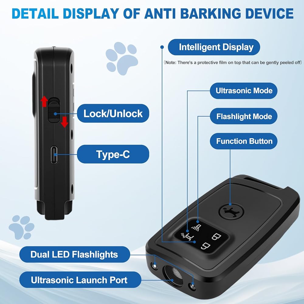 خفيفة الوزن ومحمولة: تتميز ردع اللحاء الصوتي حديثًا باستخدام لوحة عالية الدقة واضحة ، بوظيفة قفل أمان لمنع التشغيل العرضي. يغطى كاتم الصوت النباح الكلب ما يصل إلى 32 قدمًا ، ووزنًا جدًا مع تصميم معصم للتشغيل بيد واحدة ، يتيح لك حمله في أي مكان للتدريب الفعال وإيقاف الجيران الكلب من النباح
