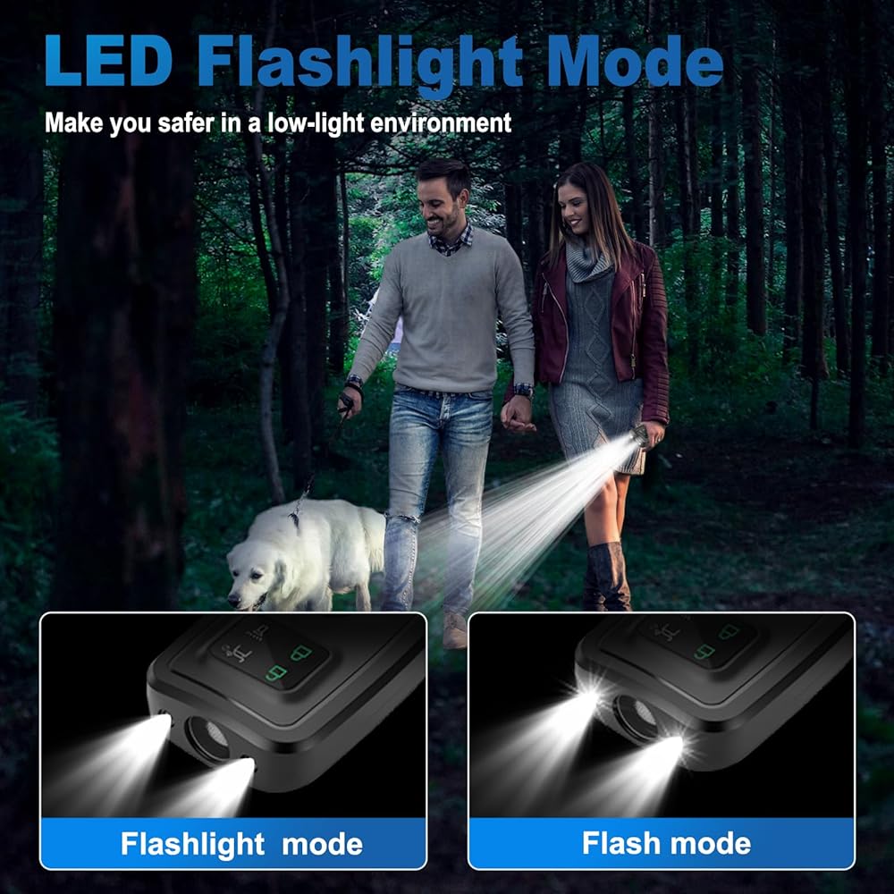 تردد آمن وفعال: يمكن لمدرب الكلاب بالموجات فوق الصوتية إصدار تردد 23-27 كيلو هرتز ، وهو ما لن يتلقاه البشر ولكنه يعمل للكلاب. أكثر من مجرد رادع الكلب النباح ، يتم تضمين مصابيح LED مزدوجة وميض ويمكن استخدامها كمصباح يدوي للأنشطة في الهواء الطلق المسائية