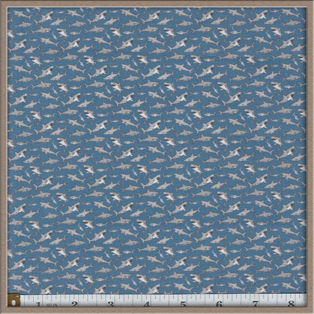 PATTERN DETAILS: Eye-catching all-over shark print design on bright blue background with silver-toned hardware accents