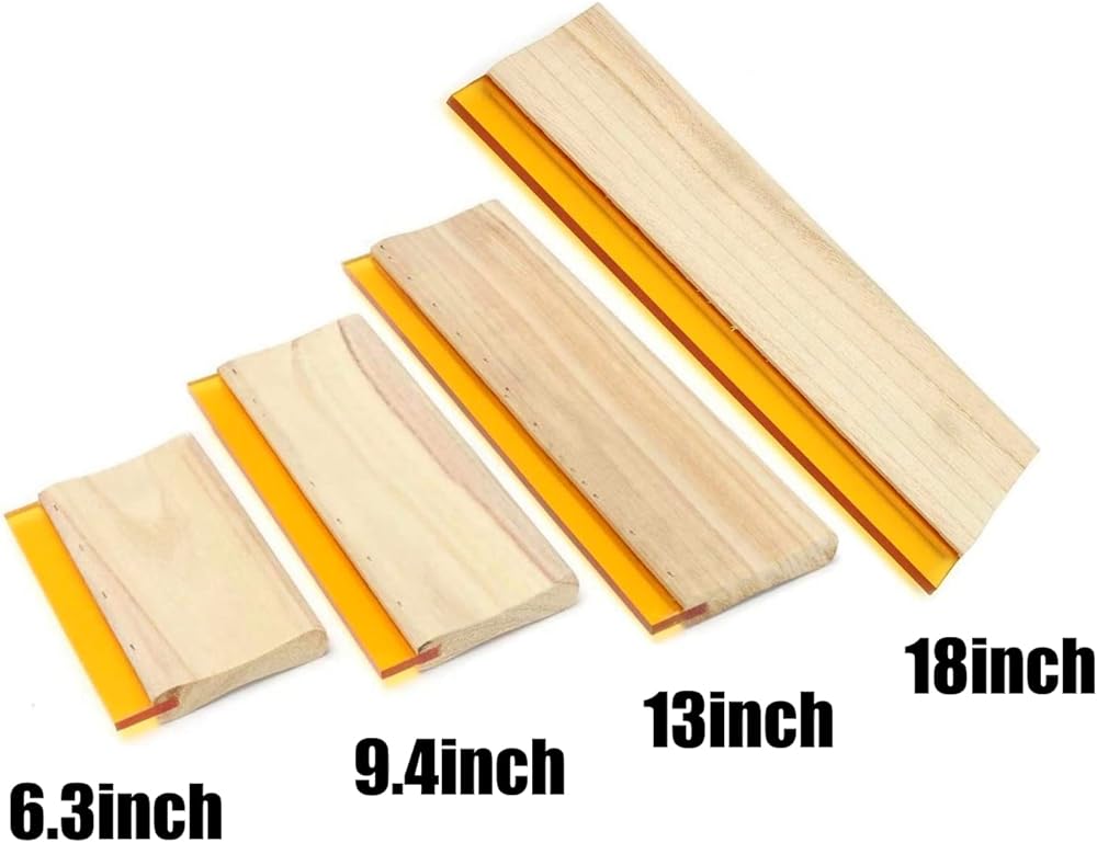 Squeegee is also called scraper, it is one kind of tool that used to scratch the ink on the screen to make it leak to the substrate. Squeegee is made by the combination of scratching strip and handle, rubber blade is inserted into the wood handle and stapled in position, then professionally sharpened after assembly. Use for both graphic and textile applications, for all hand printing and many machine applications.