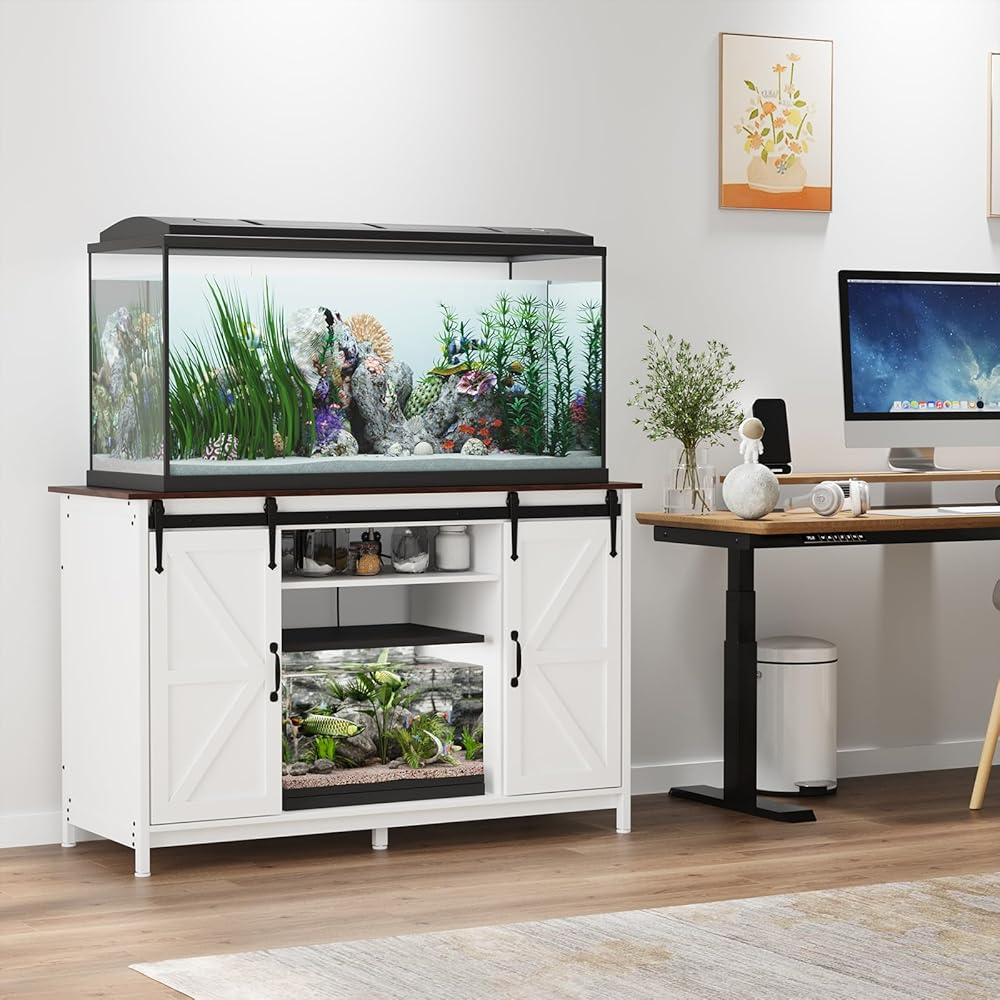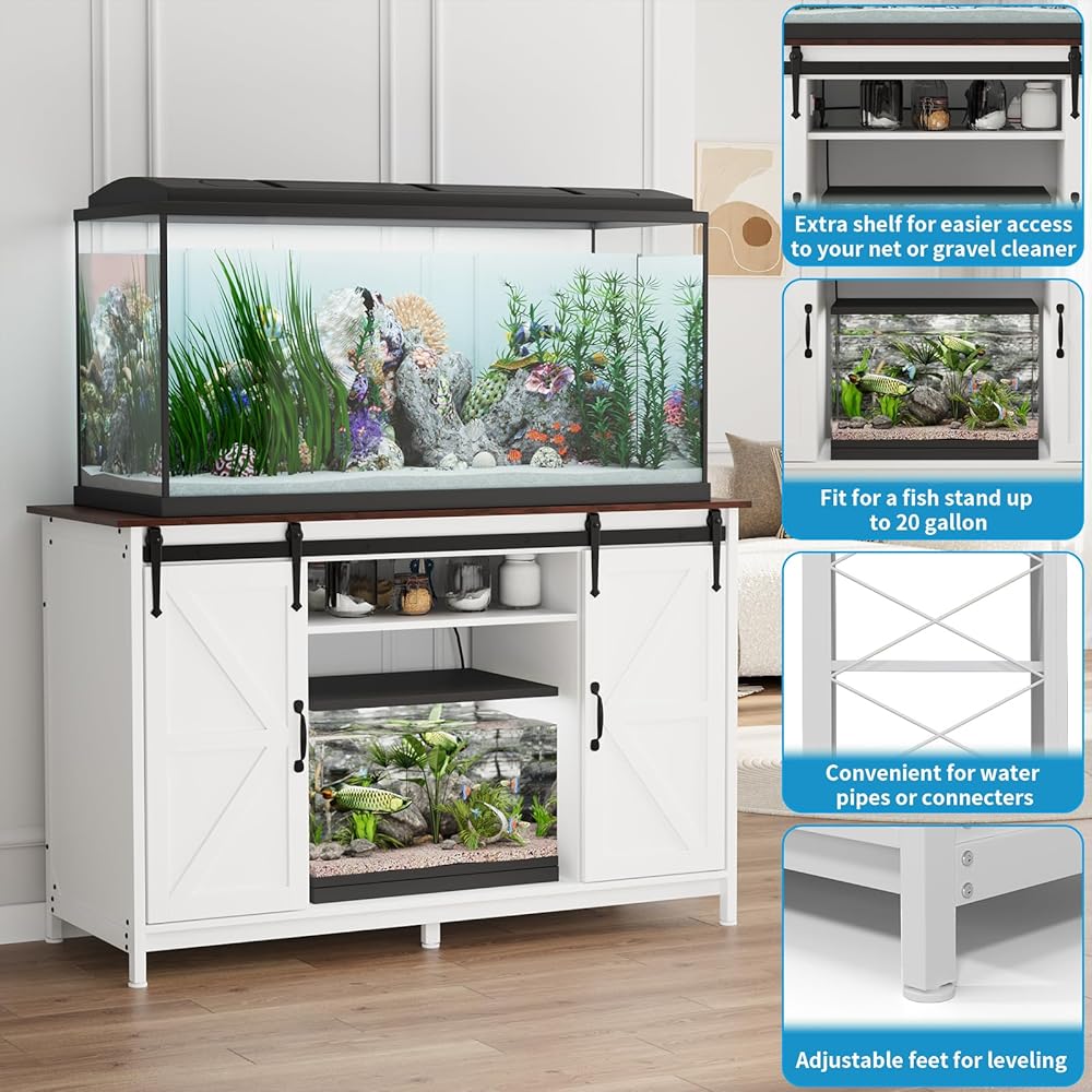 من أجل 55-75 جالون أحواض السمك: مع تصميم 2-في 1 في 1 ، يمكن أن يحمل حوض أسماك الأسماك مع خزانة لدينا حوض أسماك كبير 55-75 جالون في الأعلى. المساحة السفلية هي أيضًا لوضع مجموعات صغيرة من 5-20 جالون أو مجموعات خزان الأسماك (يرجى قياس الخزان الخاص بك لضمان نوبة)