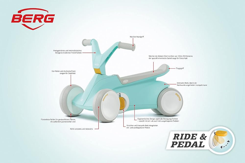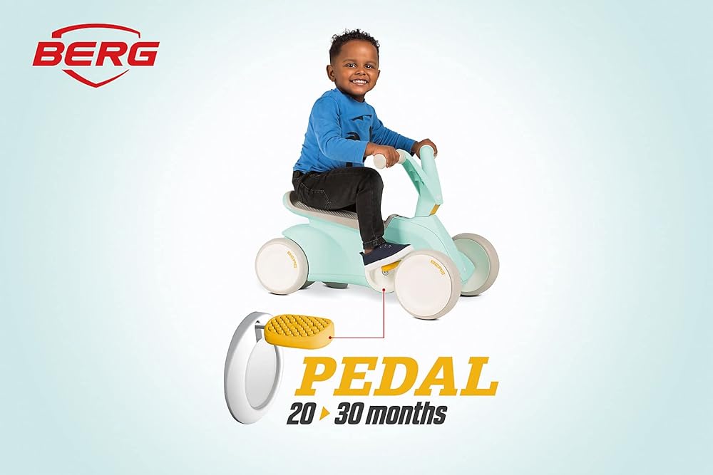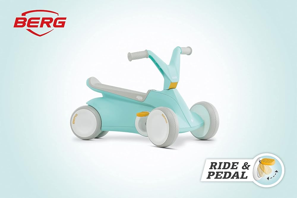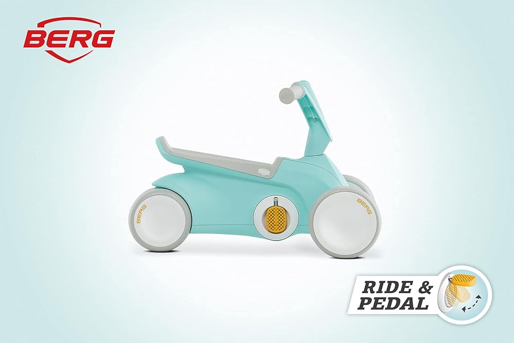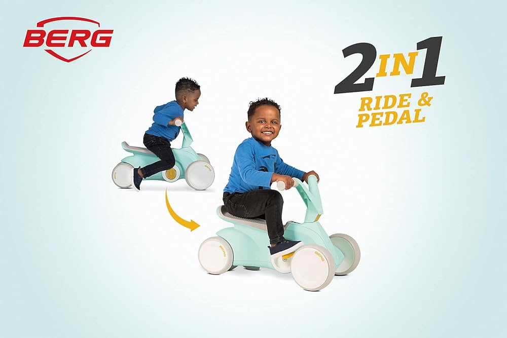 Berg Go² 2in1 Push Car Mint | ركوب مع نظام دواسة قابلة للطي متكامل ، من Baby Walker إلى Toddler Ride On Toys و Balance Bike و Pedal Gokart ، هدية عيد الميلاد الأولى ، منذ 10 إلى 30 شهرًا