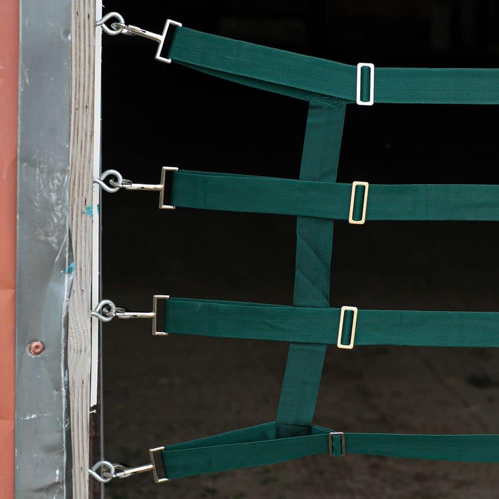 The Dura-Tech® Aisle Guard is an essential addition to any stable or barn. Designed to keep your horses safe and secure, this aisle guard expands from 10' to 12', making it suitable for most aisle ways. The 2'W x 6'L nylon mesh center panel offers maximum airflow, while the durable nylon web and mesh ensure high visibility. This product comes with 8 screw eyes and snaps for easy installation. With the Dura-Tech® Aisle Guard, you can rest assured that your horses will be safe and secure in their environment.