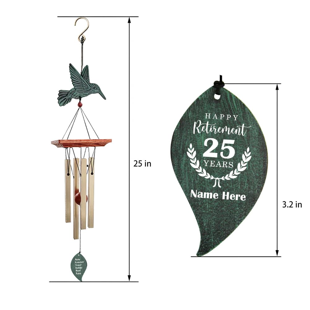• 🎁Personalized Retirement Wind Chime Gifts: The total length of the wind chime is 36 inches.Engrave your heartfelt sentiments on these wind chimes to make them a unique and timeless expression of Celebrate.Perfect for Retirement anniversaries, these chimes infuse your space with sentimental melodies.