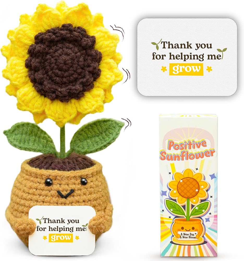🌿 الصعود إلى الحرفة المصنوعة يدويًا: مصنوع يدويًا بعناية ، يرمز مصنع عباد الشمس الإيجابي للكروشيه إلى التفاؤل والشفاء. مثالي كزهرة دعم عاطفي ، أو هدية متبكلة ، أو التأكيد الإيجابي على الرفاهية العاطفية.