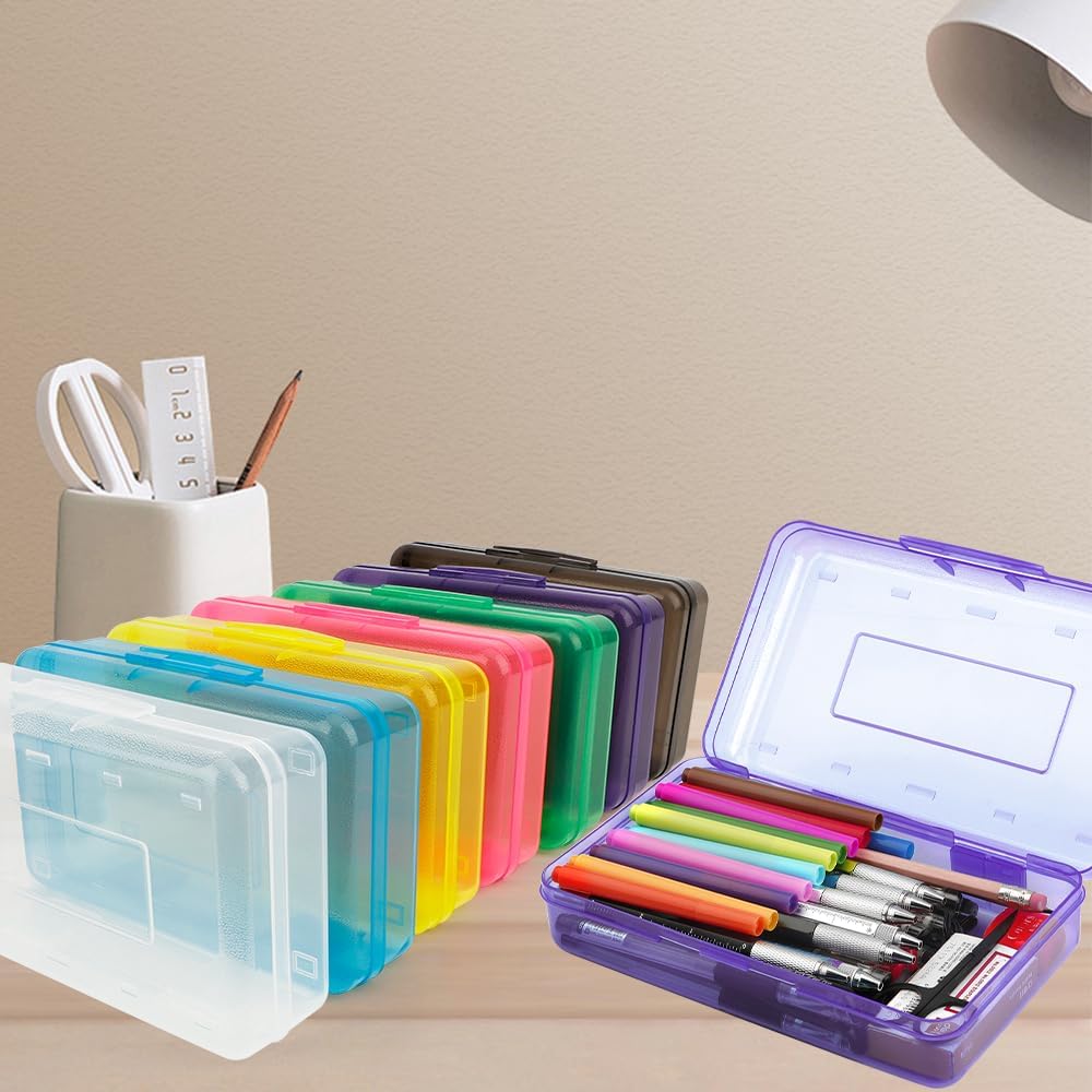 Stackable Design: Interlocking concave-convex slots enable stable stacking of multiple cases.Frosted non-slip edges ensure a secure grip, while dual-button reinforced hinges provide smooth opening/closing.ideal for desks, classrooms, or travel to maximize space efficiency.
