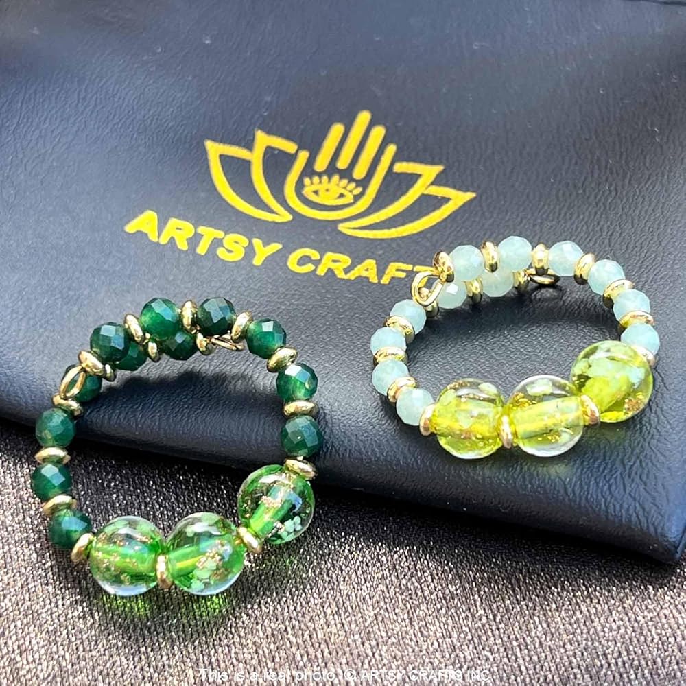❤ This package includes 2 rings. These rings are handmade in the USA. We use hand blown glass beads with crystal clear elastic that easy to stretchy fit for wrists from 6 inches to 7.5 inches.