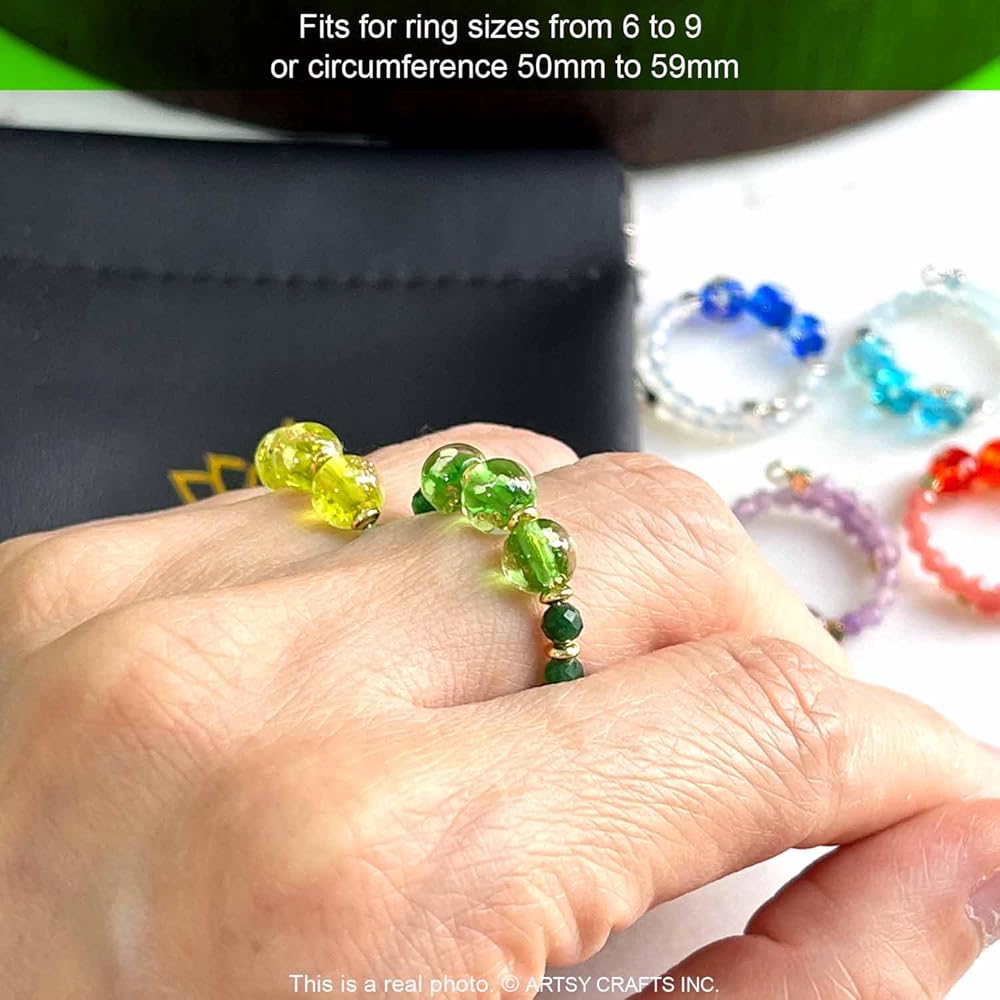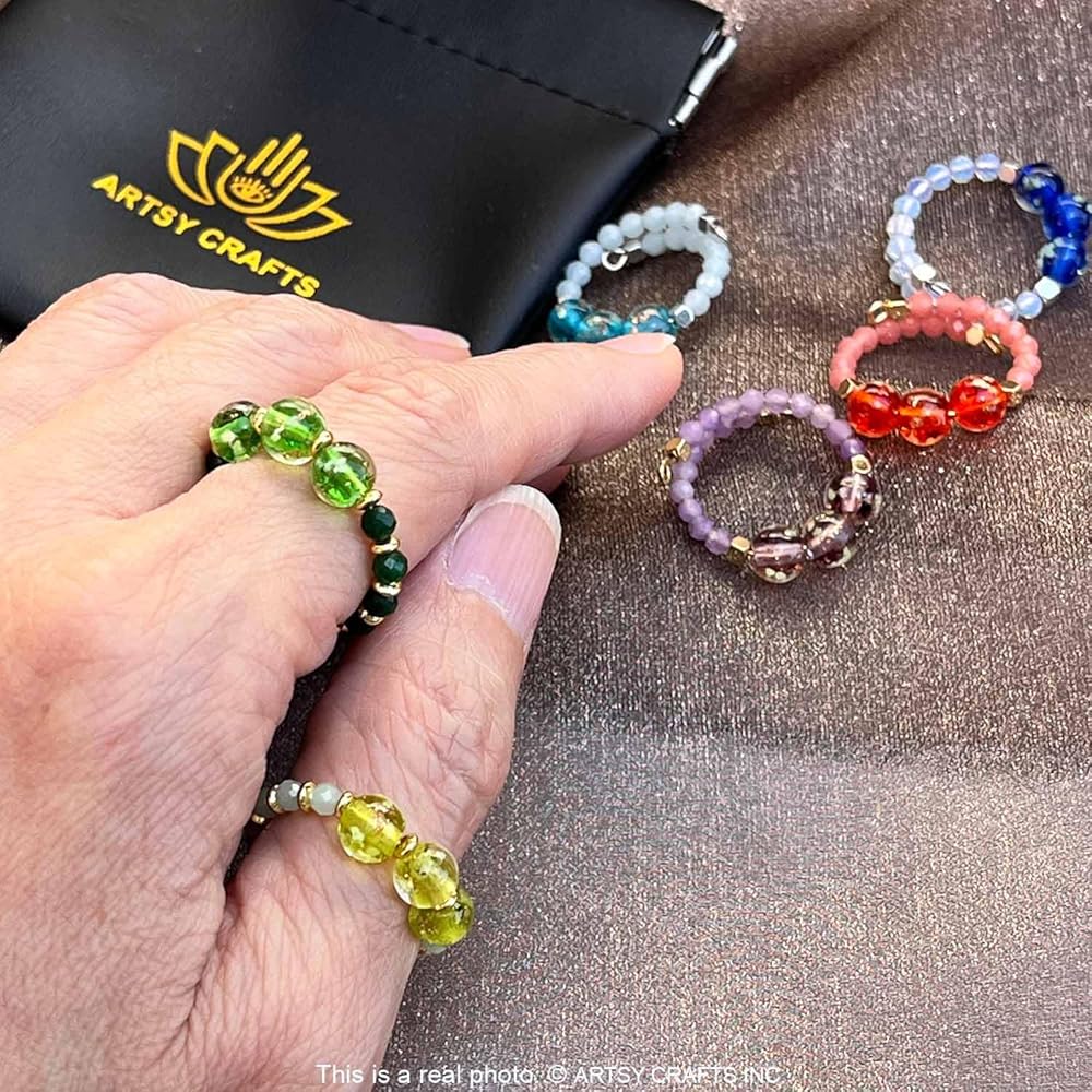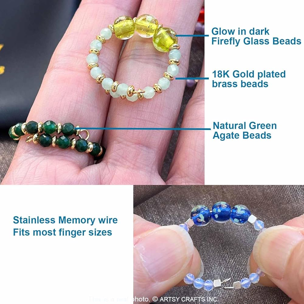 ❤ We use stainless memory wire to link firefly glass beads and natural gemstone beads. Featuring an open end design that easy to fit finger size from 6 to 9 (or 51mm to 59mm). Rings are lightweight and comfortable for wearing.
