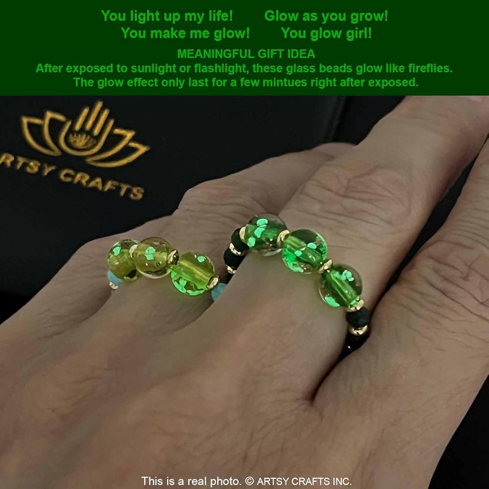 ❤ These rings designed with Murano glass beads which glow like firefly in the dark after exposed to a light source. Ideal as an inspirational gift with beautiful meaning as: You Light Up My Life! Glow as You Grow! You Make Me Glow! Let's Glow Crazy! Charge up, trailblazer!