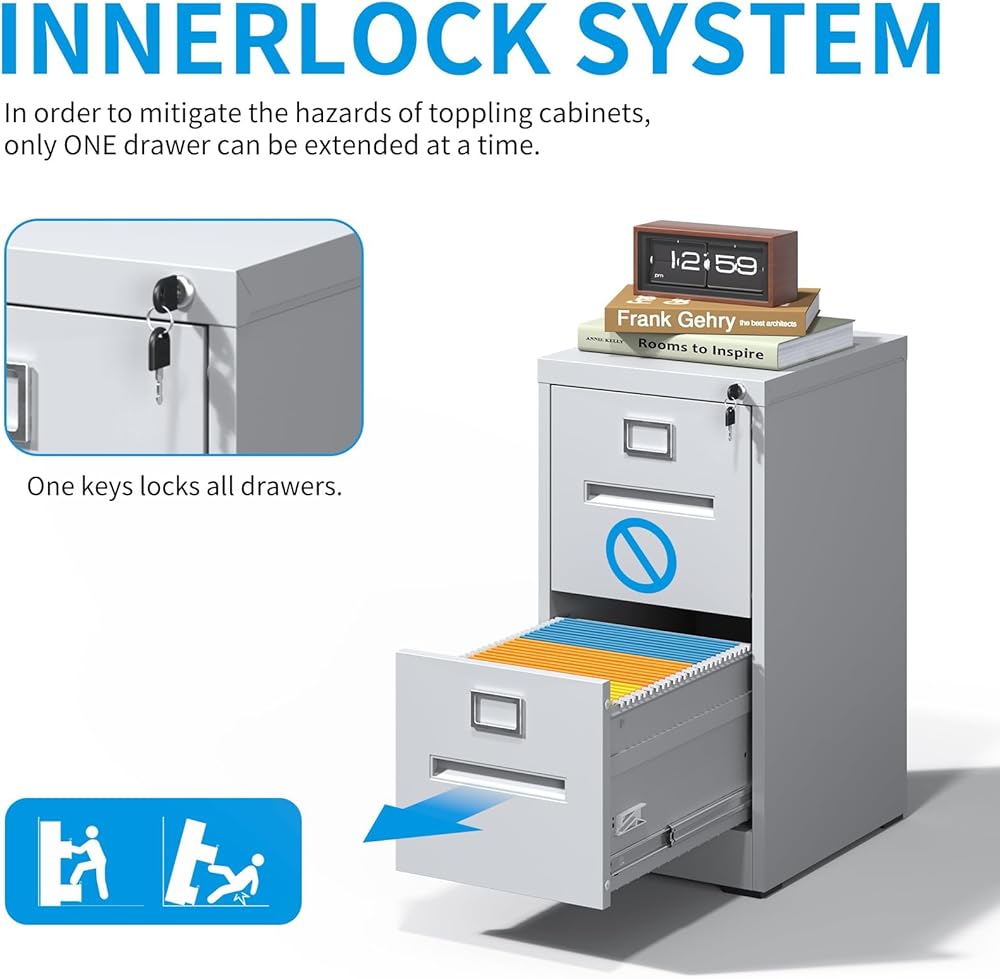 • 【قفل مضاد للانتقال والآمن】 تتميز خزانات ملفات المكاتب الخاصة بنا بآلية متداخلة ، يمكن أن يتم إلغاء درج واحد فقط في وقت واحد ، مما يقلل من خطر التحول. وخزانة الملفات المعدنية مزودة بمفتاحين ، واحد منها هو مفتاح احتياطي.